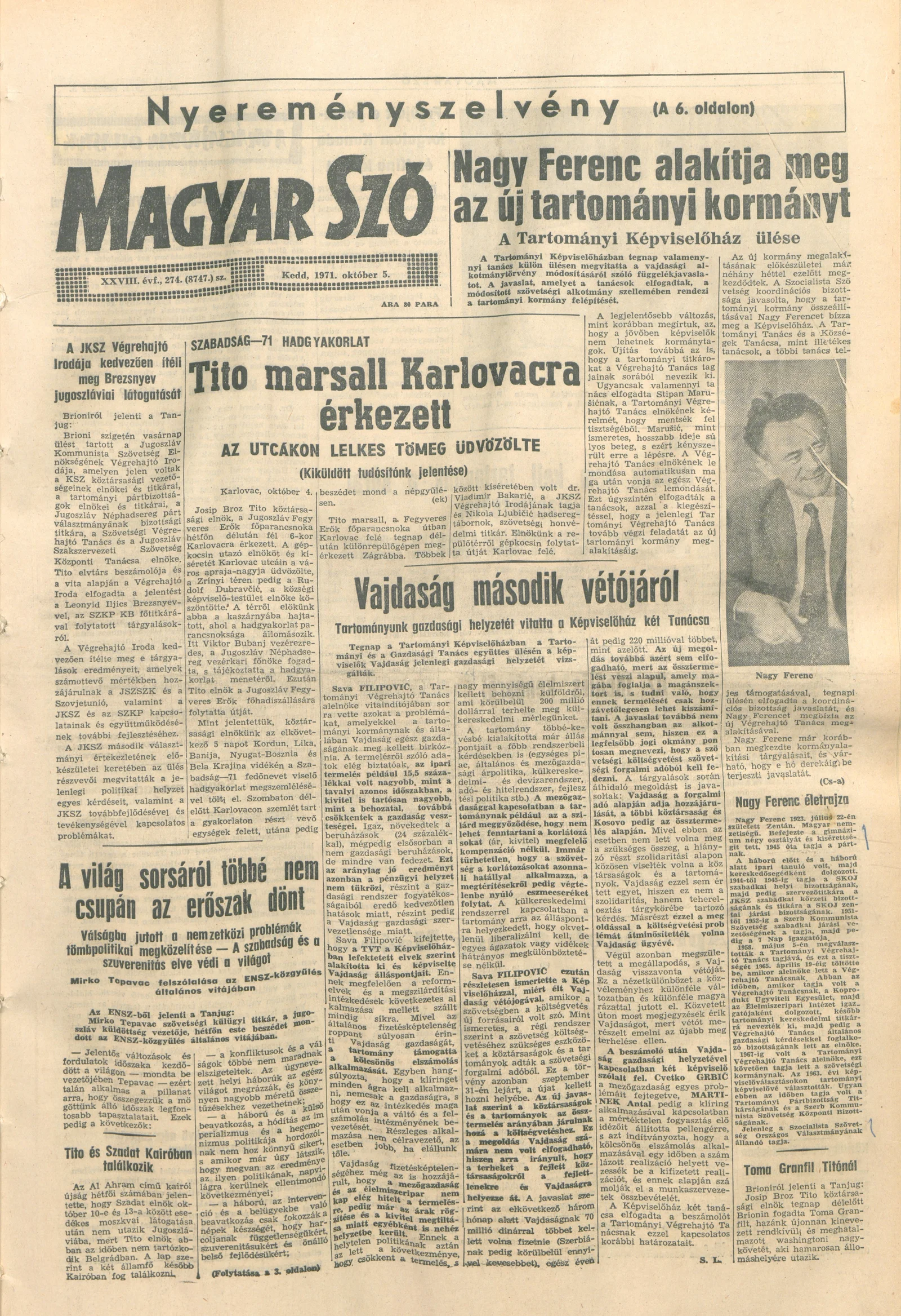 Magyar Szó, 28. évf. 1971. október 5. 274. sz. 1–16. oldal