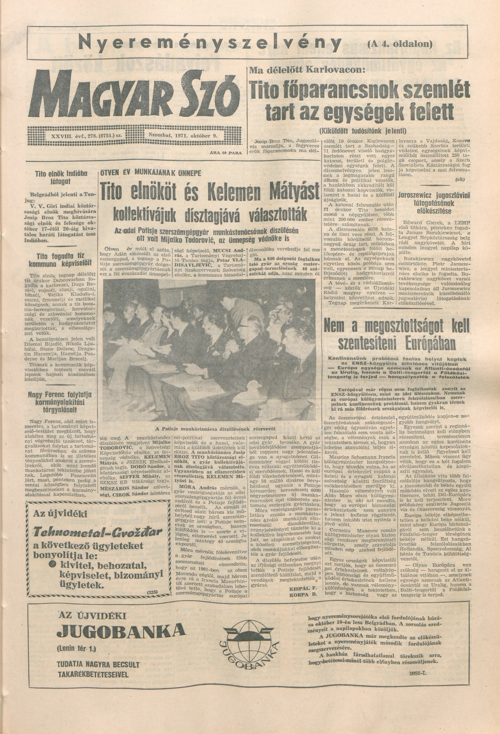 Magyar Szó, 28. évf. 1971. október 9. 278. sz. 1–20. oldal