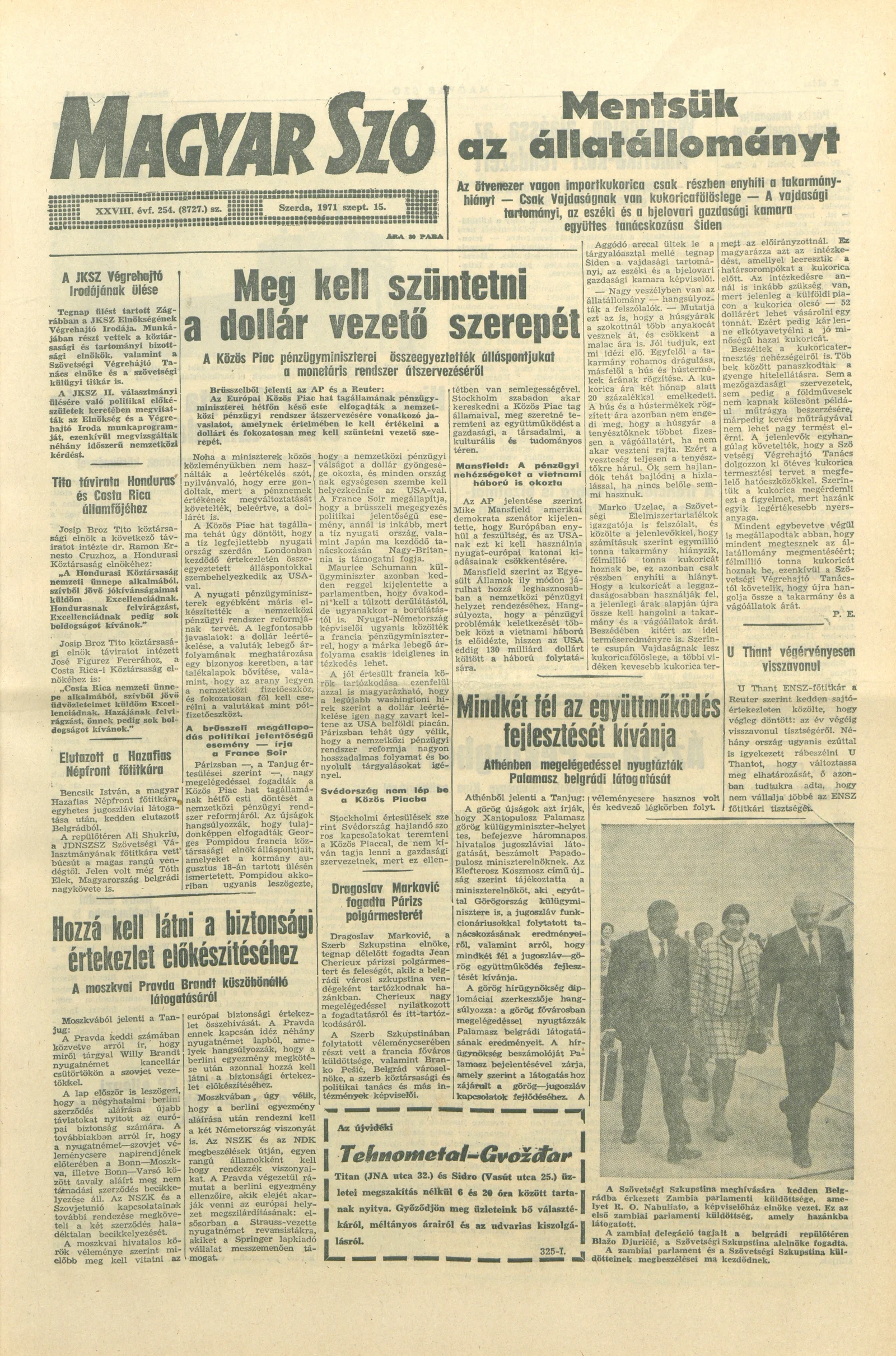 Magyar Szó, 28. évf. 1971. szeptember 15. 254. sz. 1–16. oldal