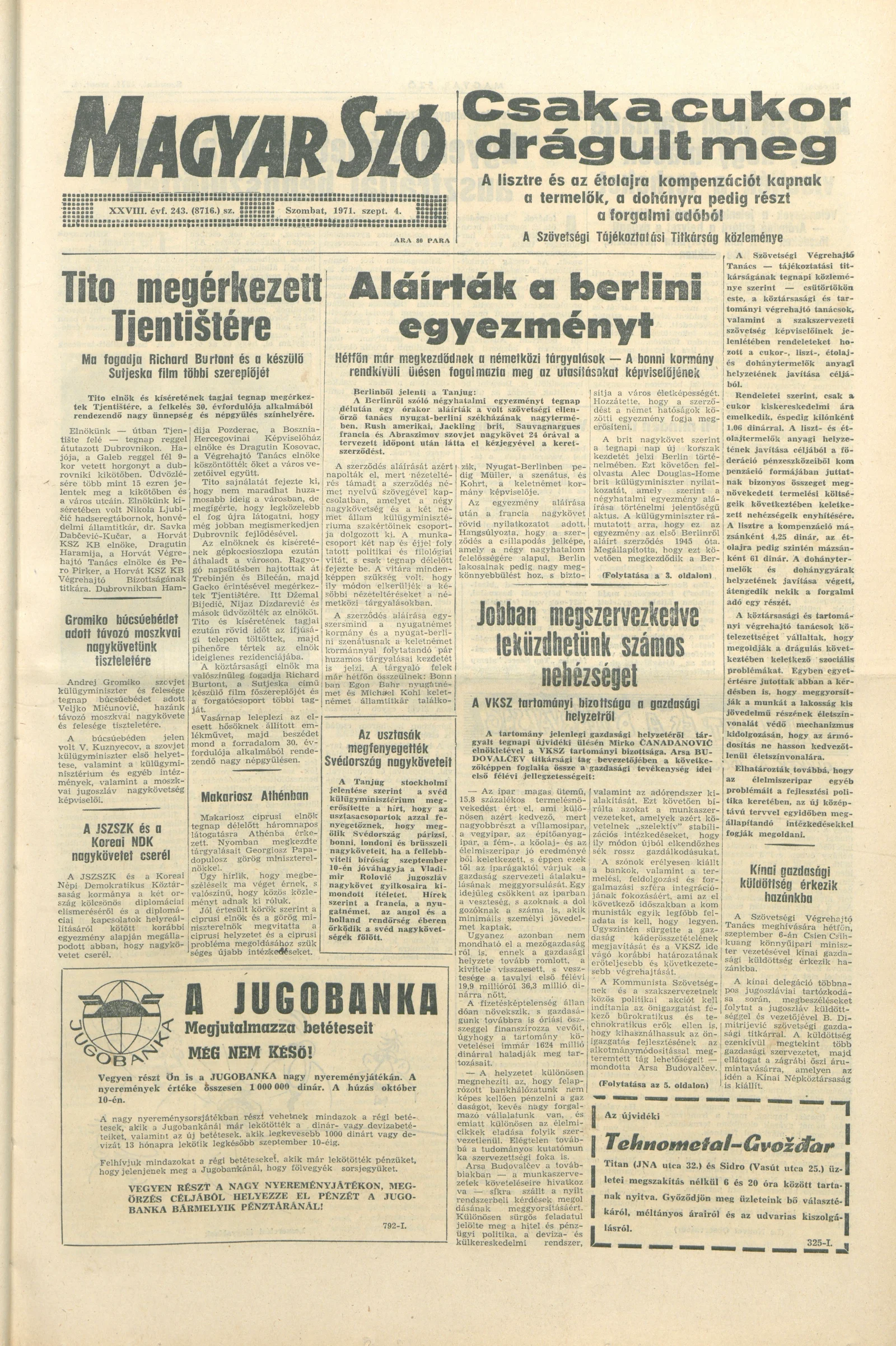 Magyar Szó, 28. évf. 1971. szeptember 4. 243. sz. 1–16. oldal