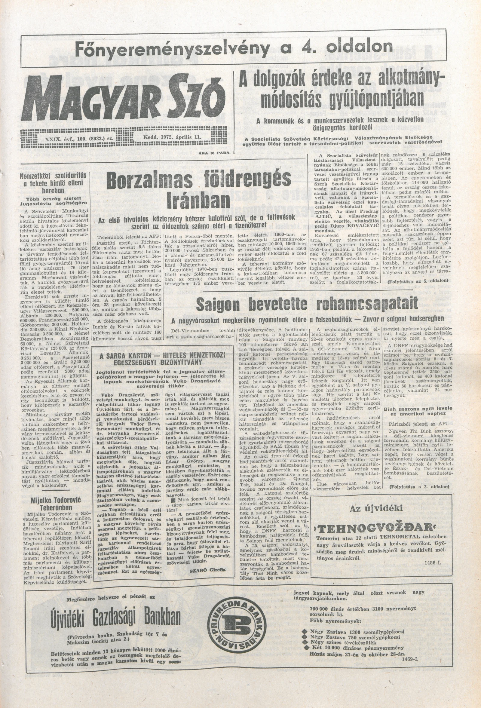 Magyar Szó, 29. évf. 1972. április 11. 100. sz. 1–16. oldal