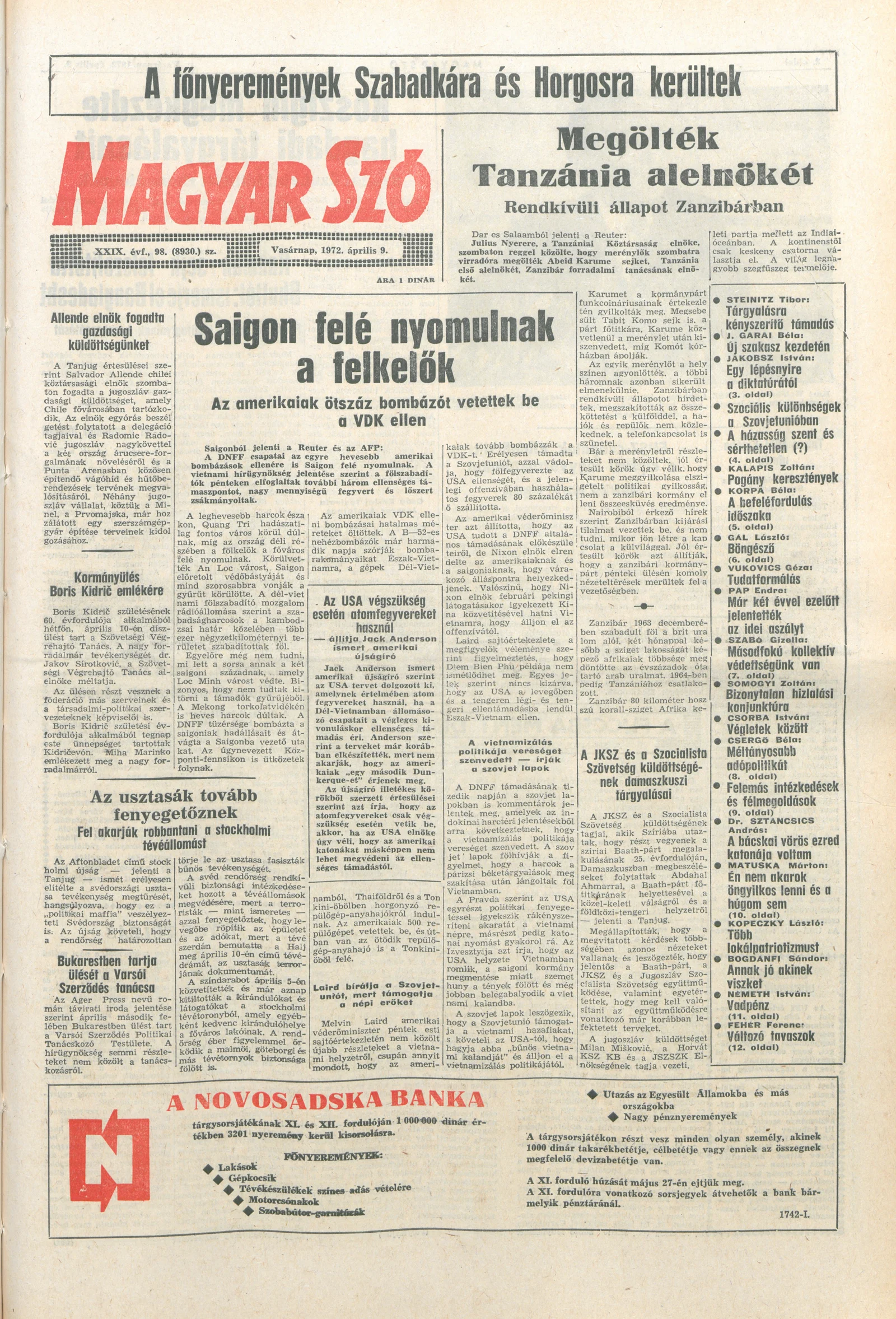 Magyar Szó, 29. évf. 1972. április 9. 98. sz. 1–32. oldal