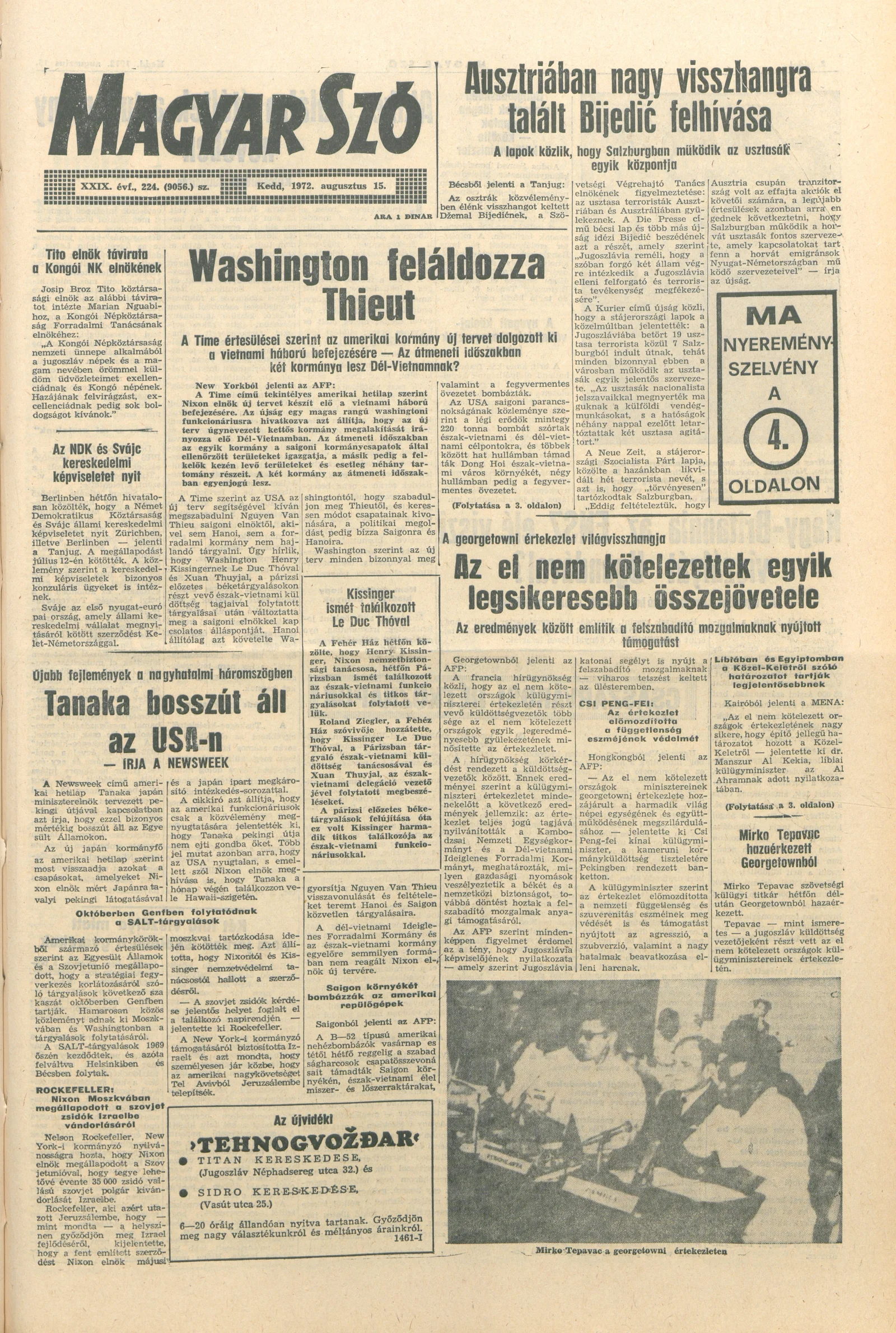 Magyar Szó, 29. évf. 1972. augusztus 15. 224. sz. 1–16. oldal