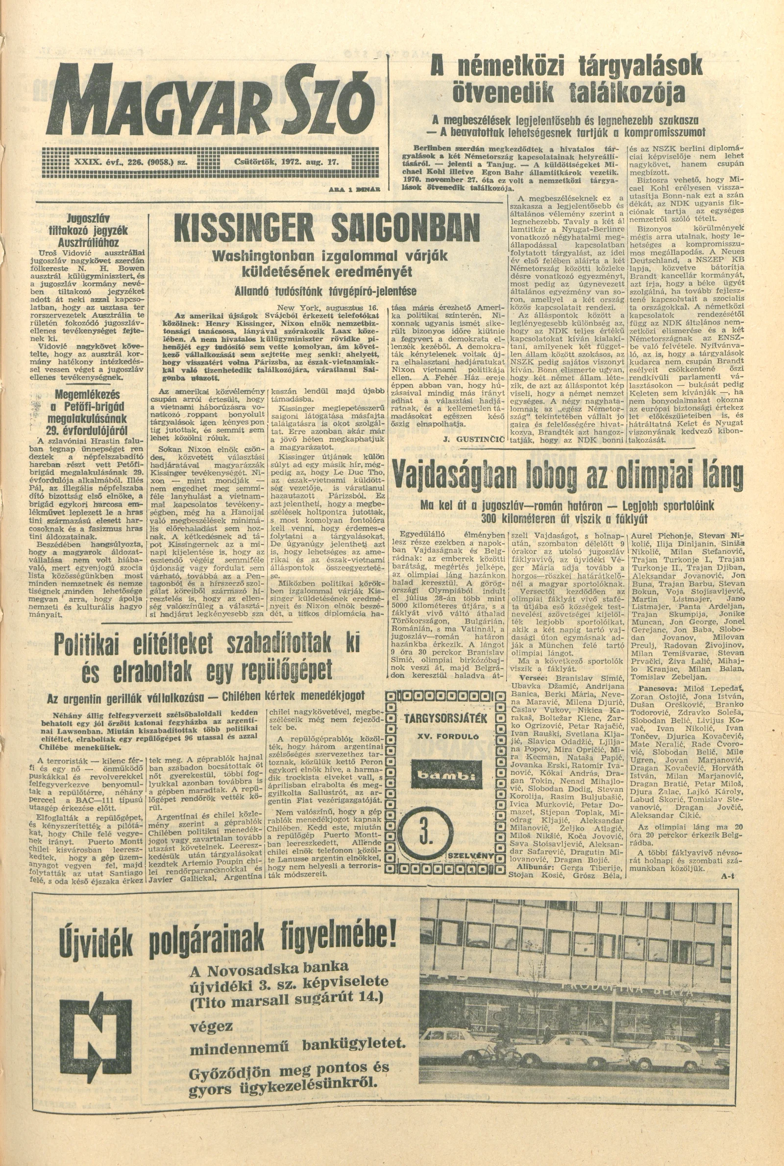 Magyar Szó, 29. évf. 1972. augusztus 17. 226. sz. 1–12. oldal