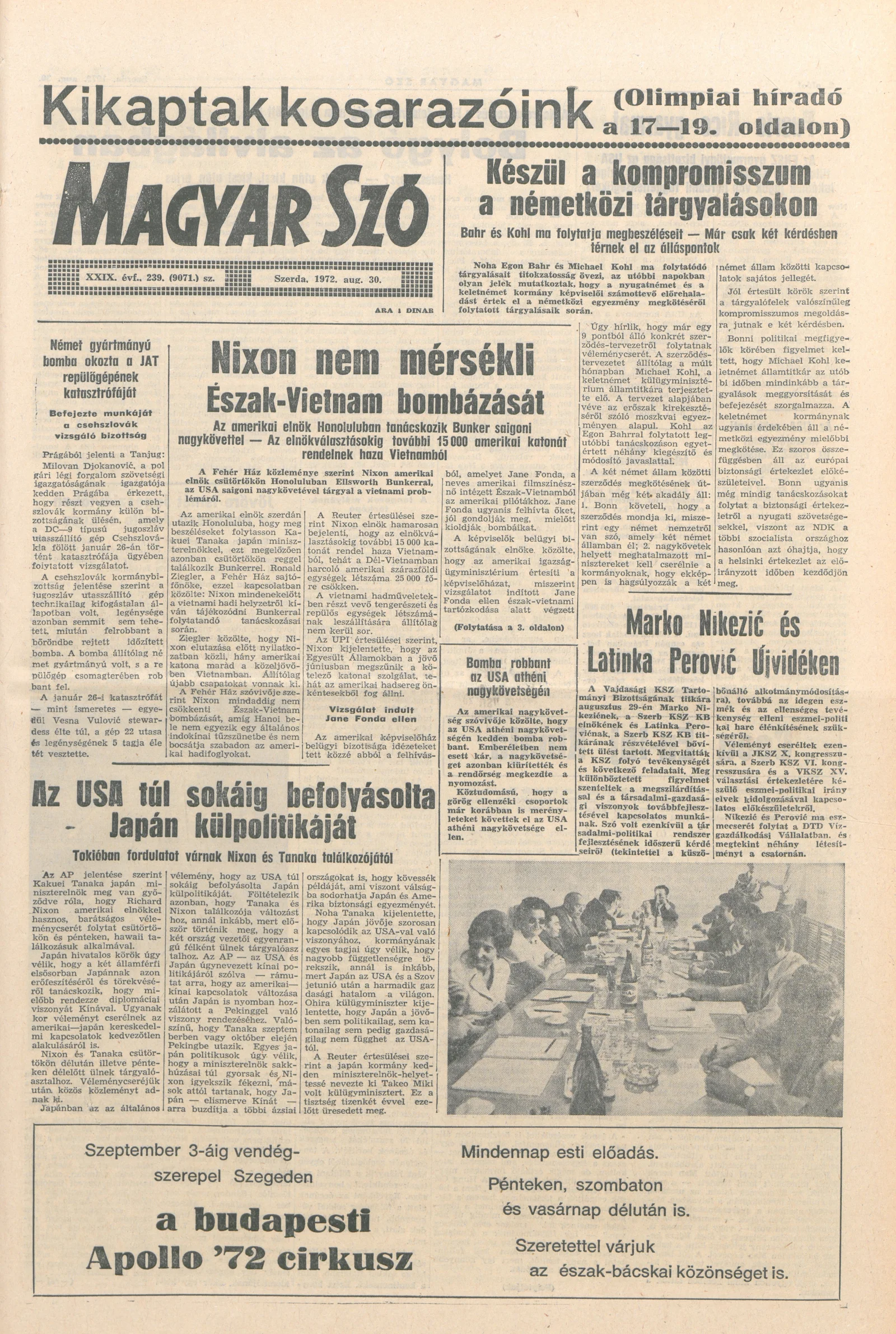 Magyar Szó, 29. évf. 1972. augusztus 30. 239. sz. 1–20. oldal