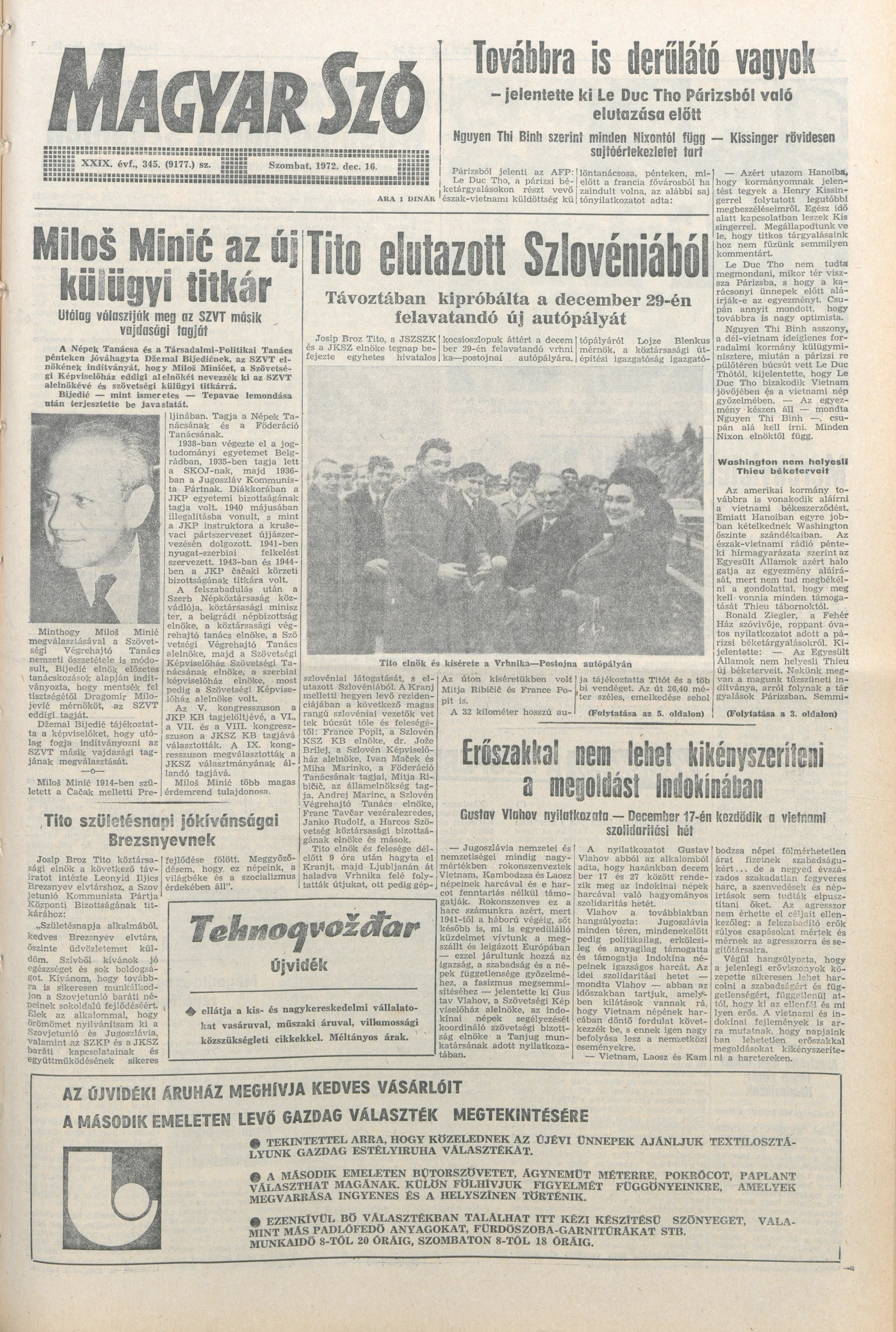 Magyar Szó, 29. évf. 1972. december 16. 345. sz. 1–20. oldal