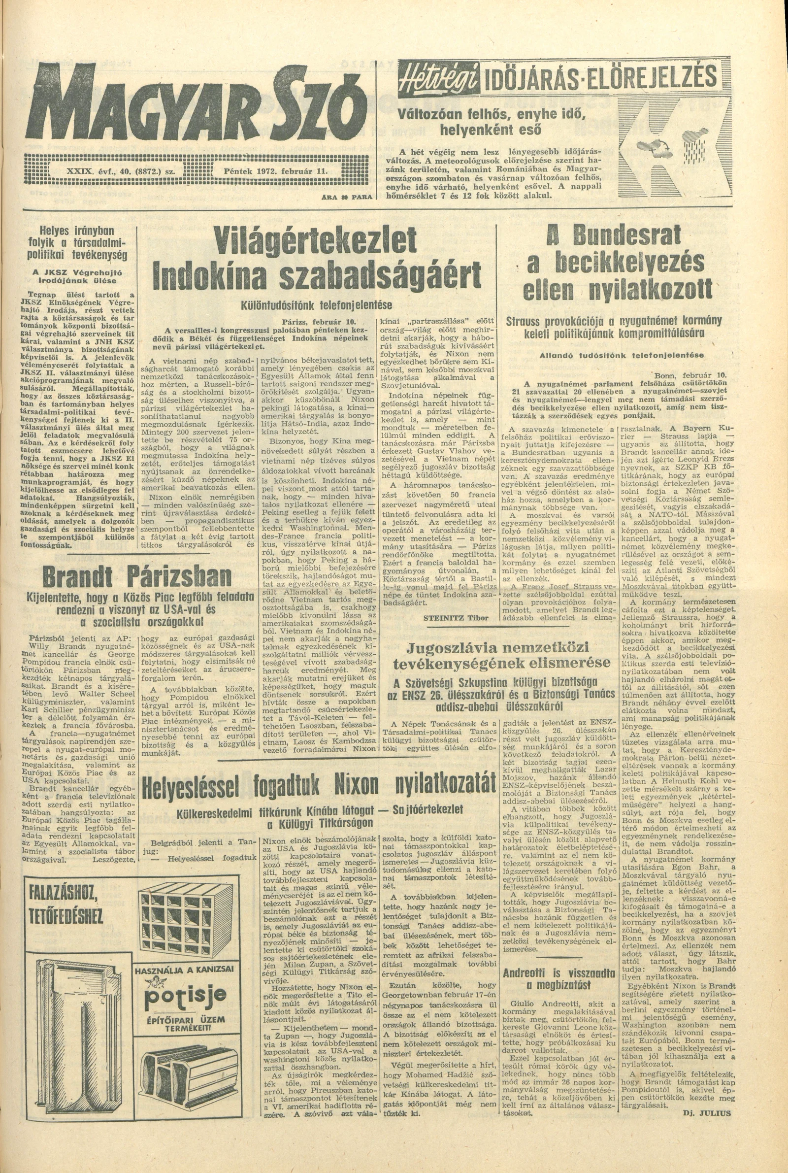 Magyar Szó, 29. évf. 1972. február 11. 40. sz. 1–12. oldal