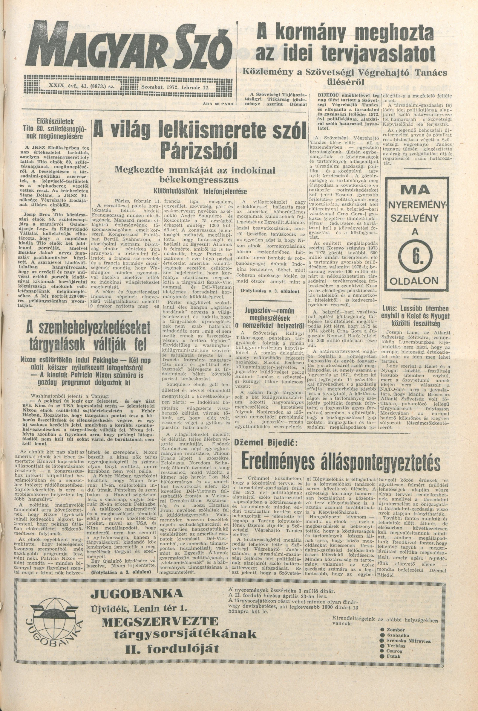 Magyar Szó, 29. évf. 1972. február 12. 41. sz. 1–20. oldal