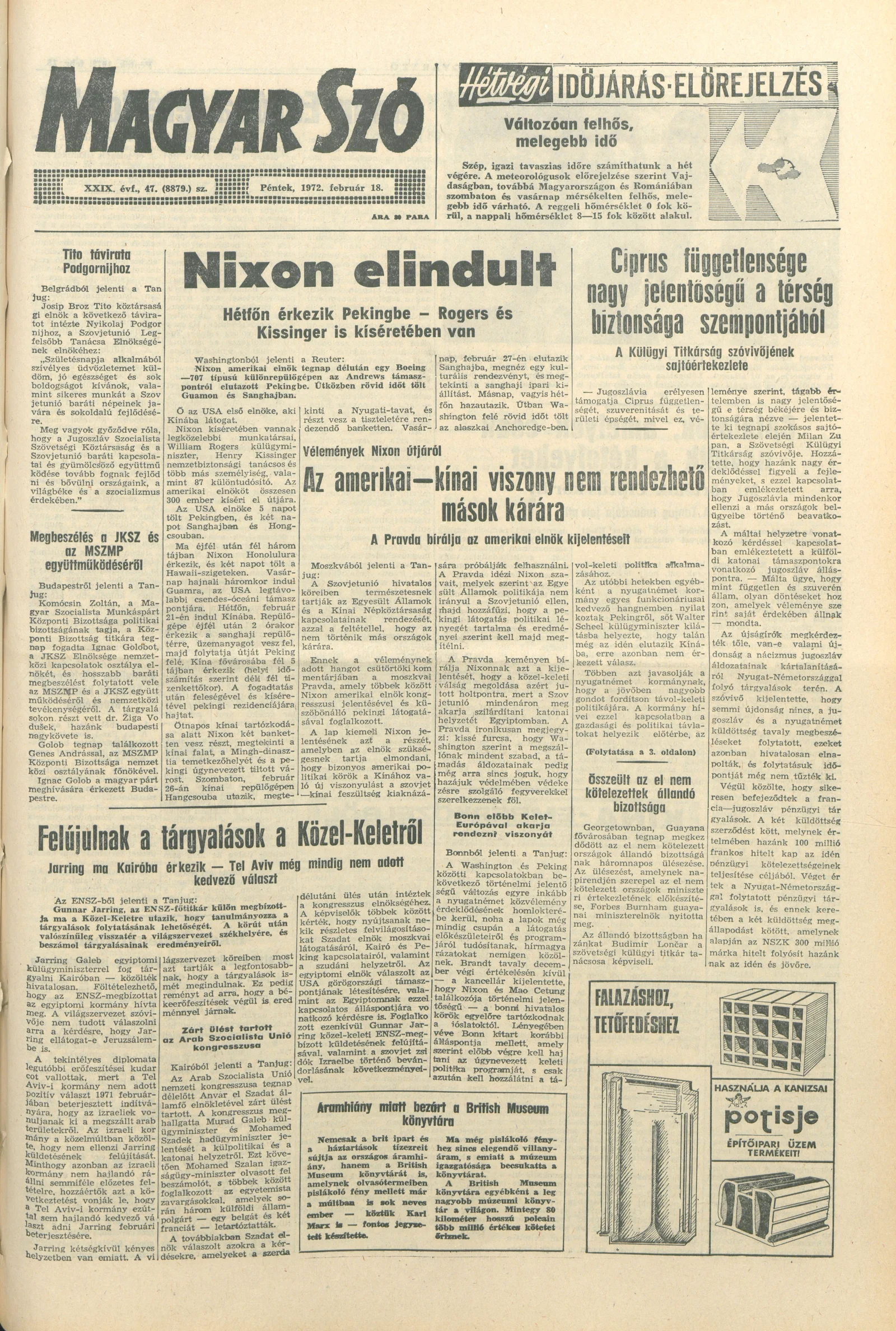 Magyar Szó, 29. évf. 1972. február 18. 47. sz. 1–12. oldal