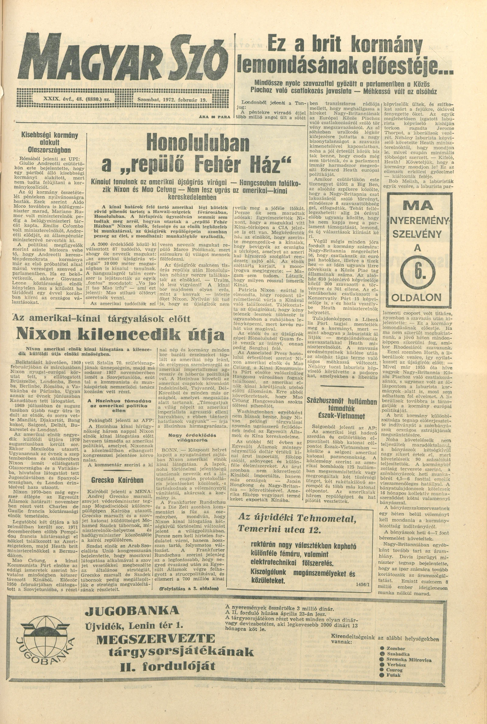 Magyar Szó, 29. évf. 1972. február 19. 48. sz. 1–20. oldal