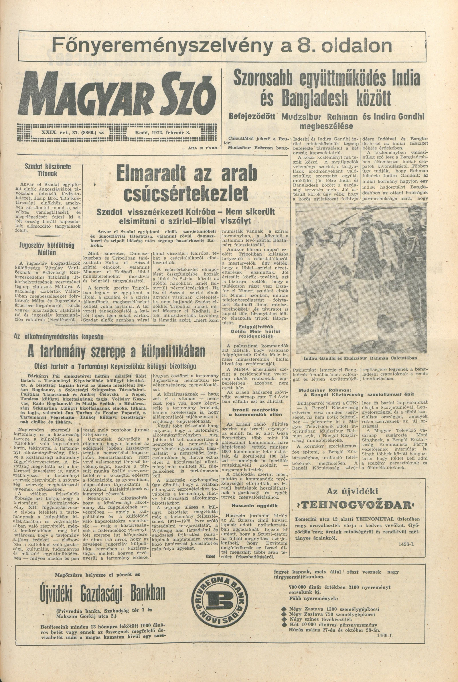 Magyar Szó, 29. évf. 1972. február 8. 37. sz. 1–16. oldal