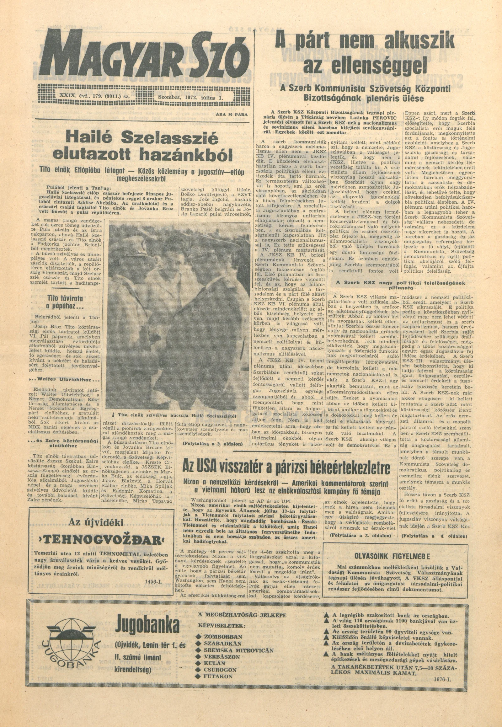 Magyar Szó, 29. évf. 1972. július 1. 179. sz. 1–18. oldal