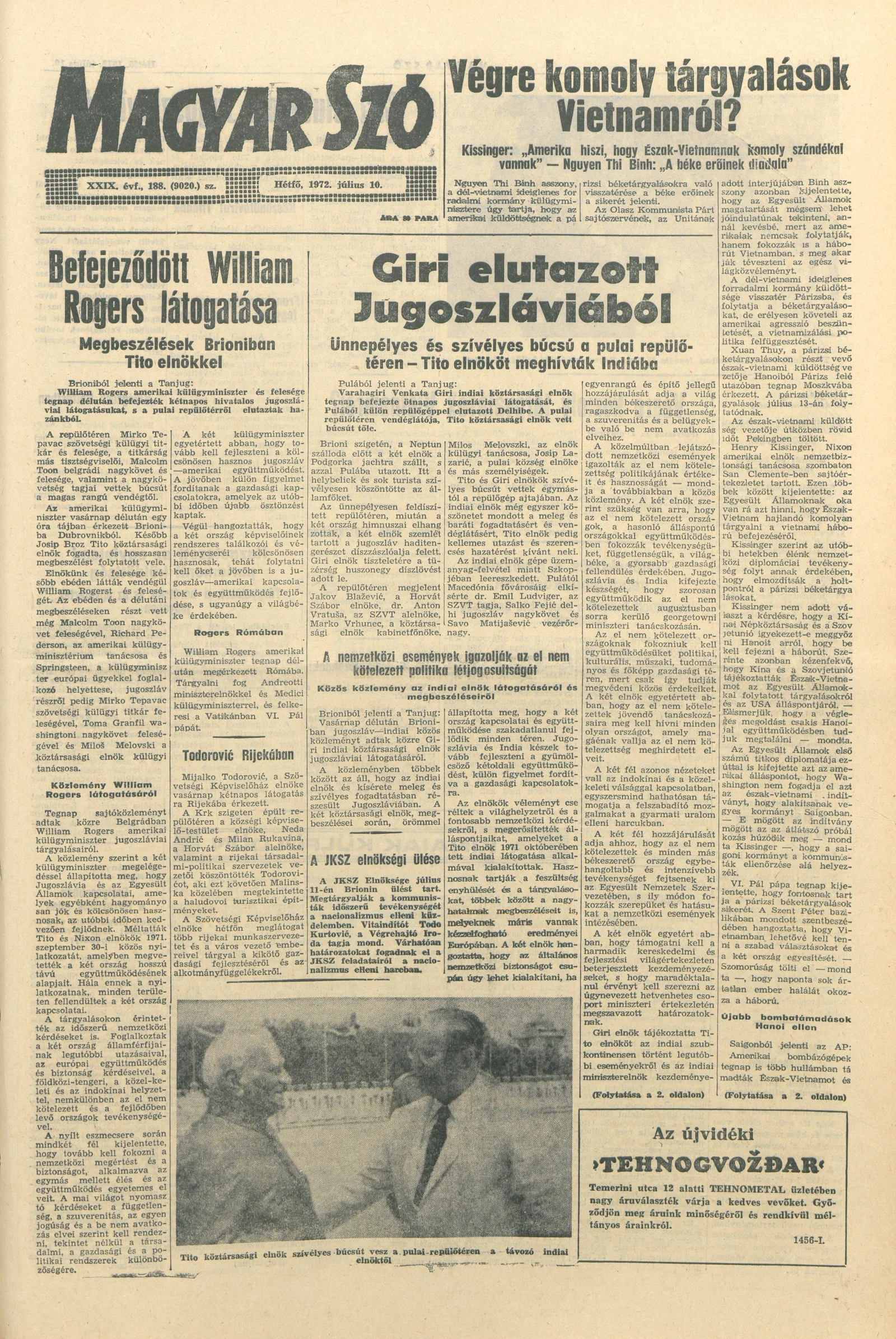 Magyar Szó, 29. évf. 1972. július 10. 188. sz. 1–8. oldal
