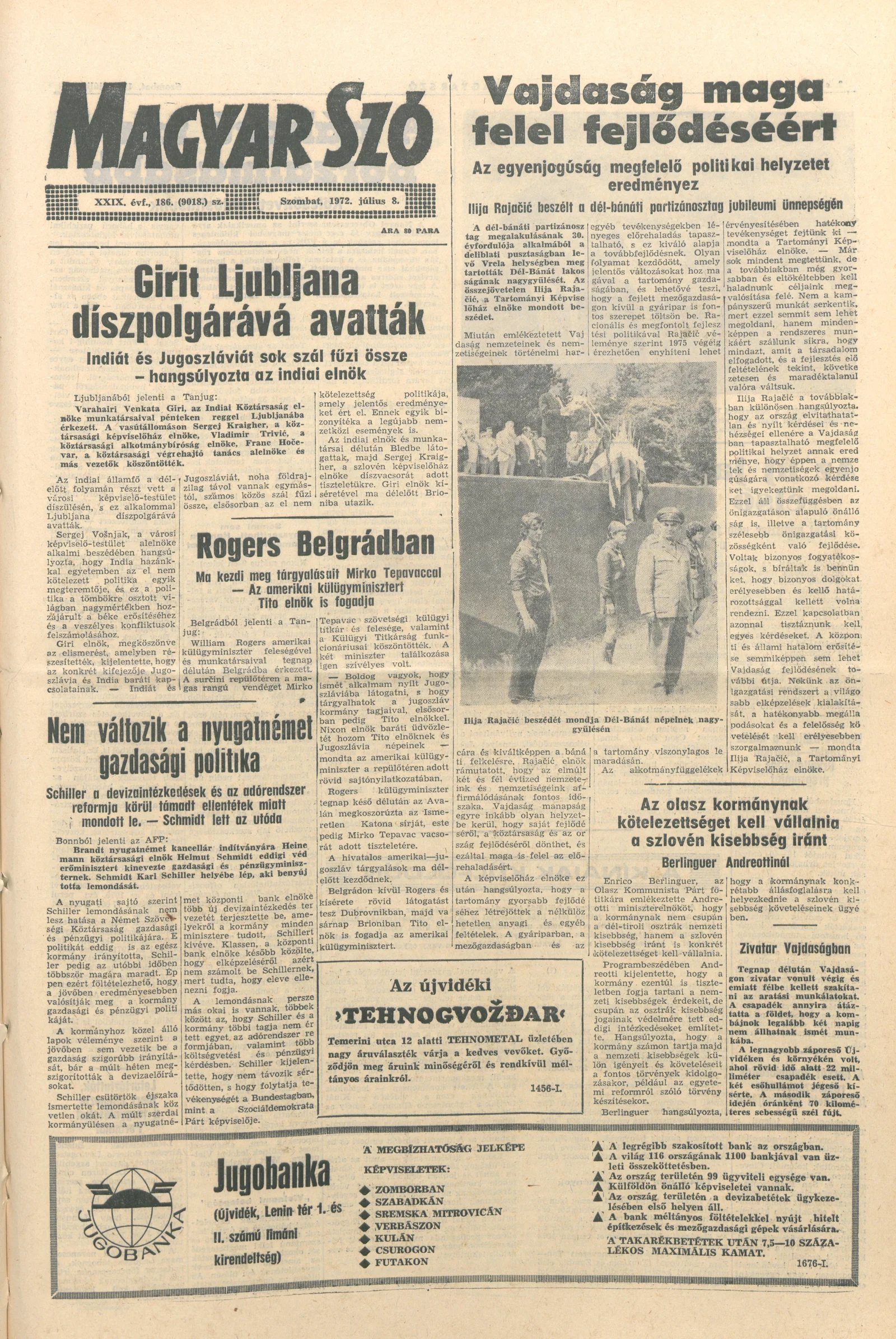 Magyar Szó, 29. évf. 1972. július 8. 186. sz. 1–16. oldal