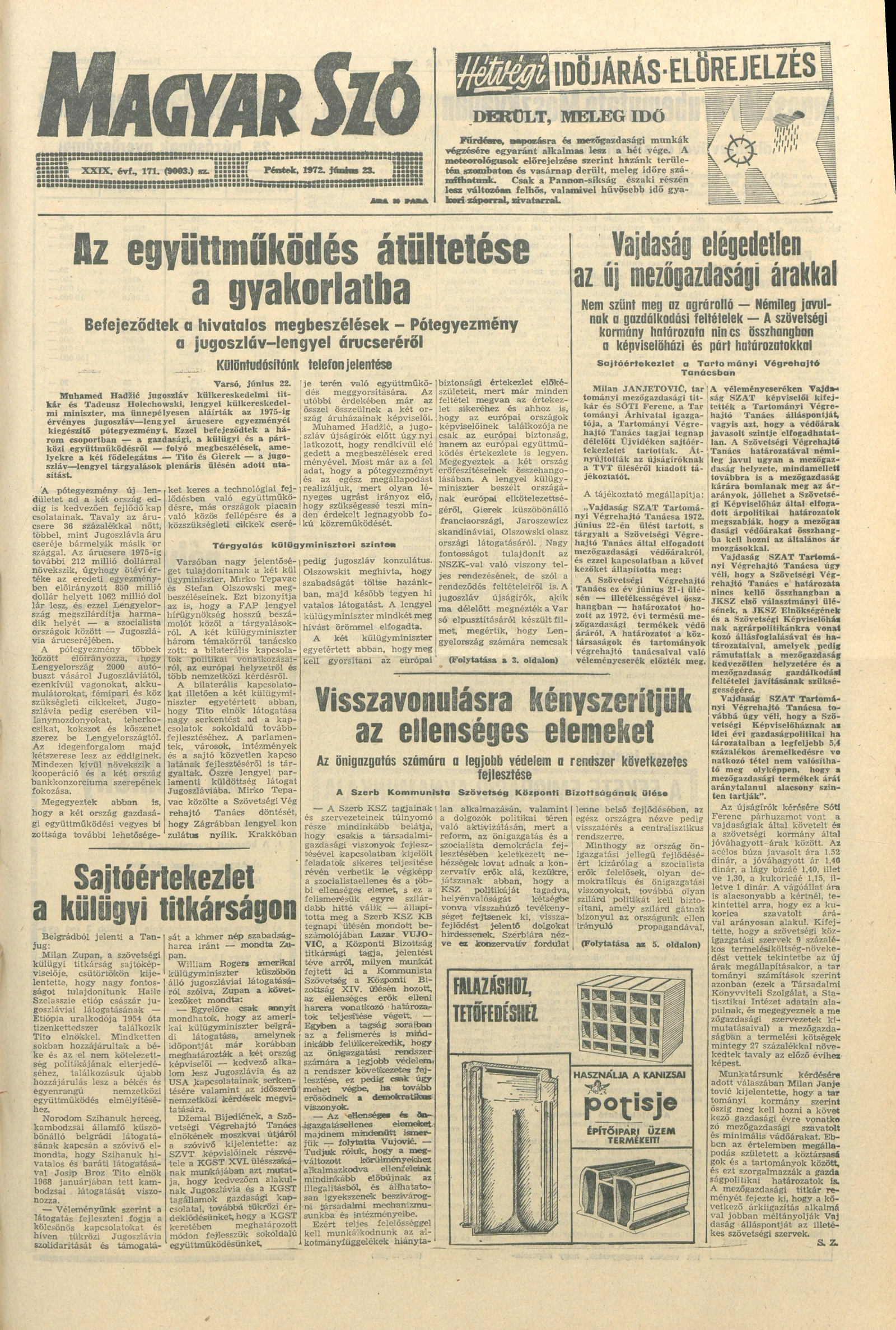 Magyar Szó, 29. évf. 1972. június 23. 171. sz. 1–14. oldal