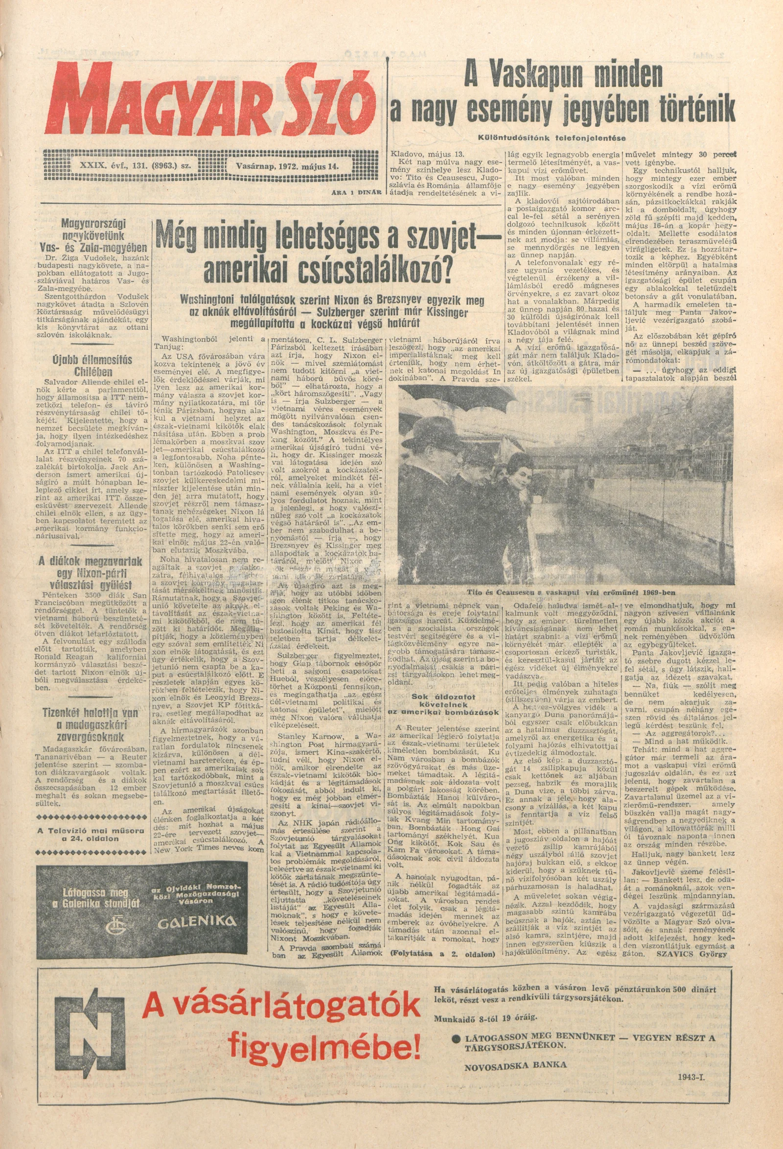 Magyar Szó, 29. évf. 1972. május 14. 131. sz. 1–32. oldal