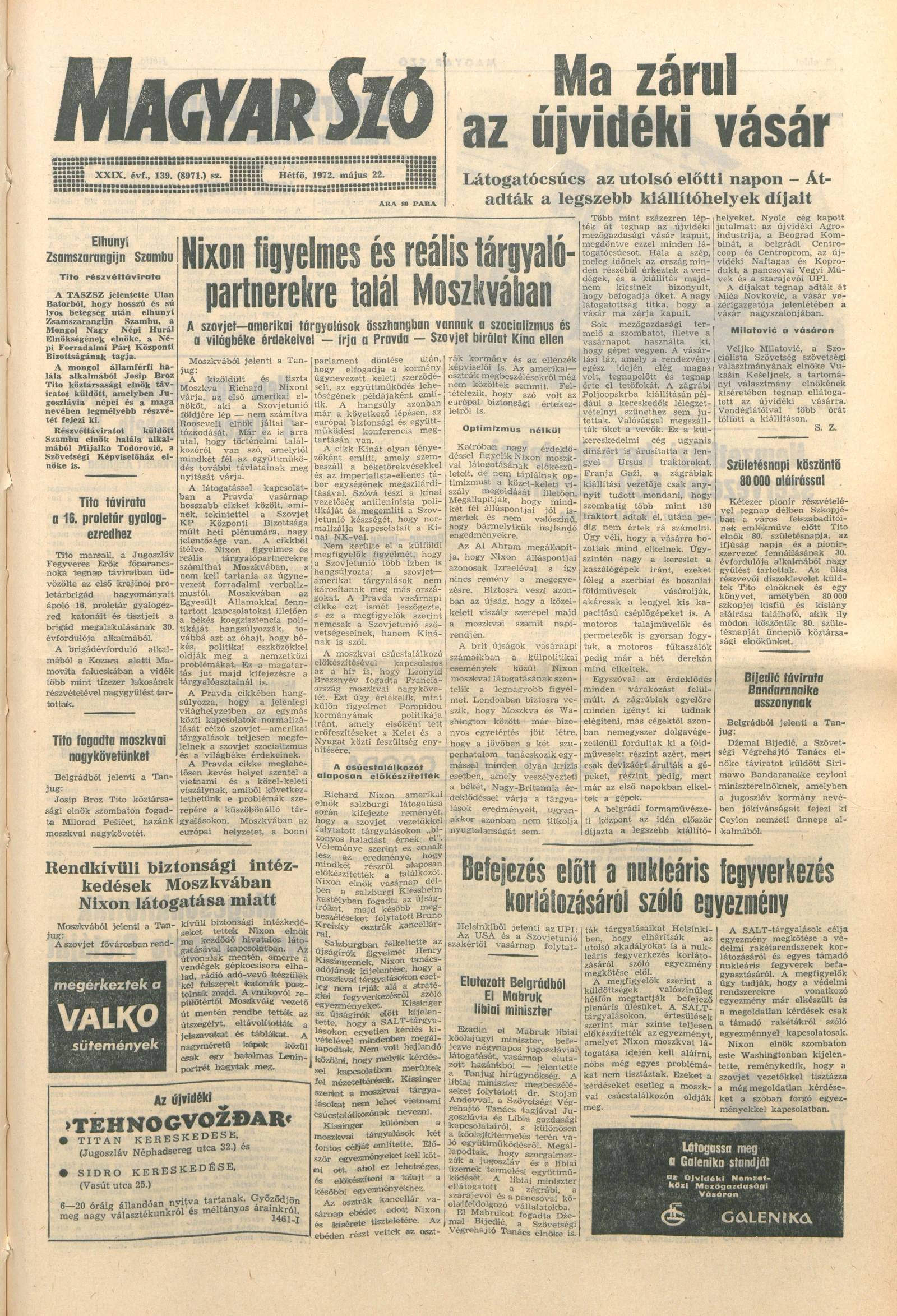 Magyar Szó, 29. évf. 1972. május 22. 139. sz. 1–12. oldal