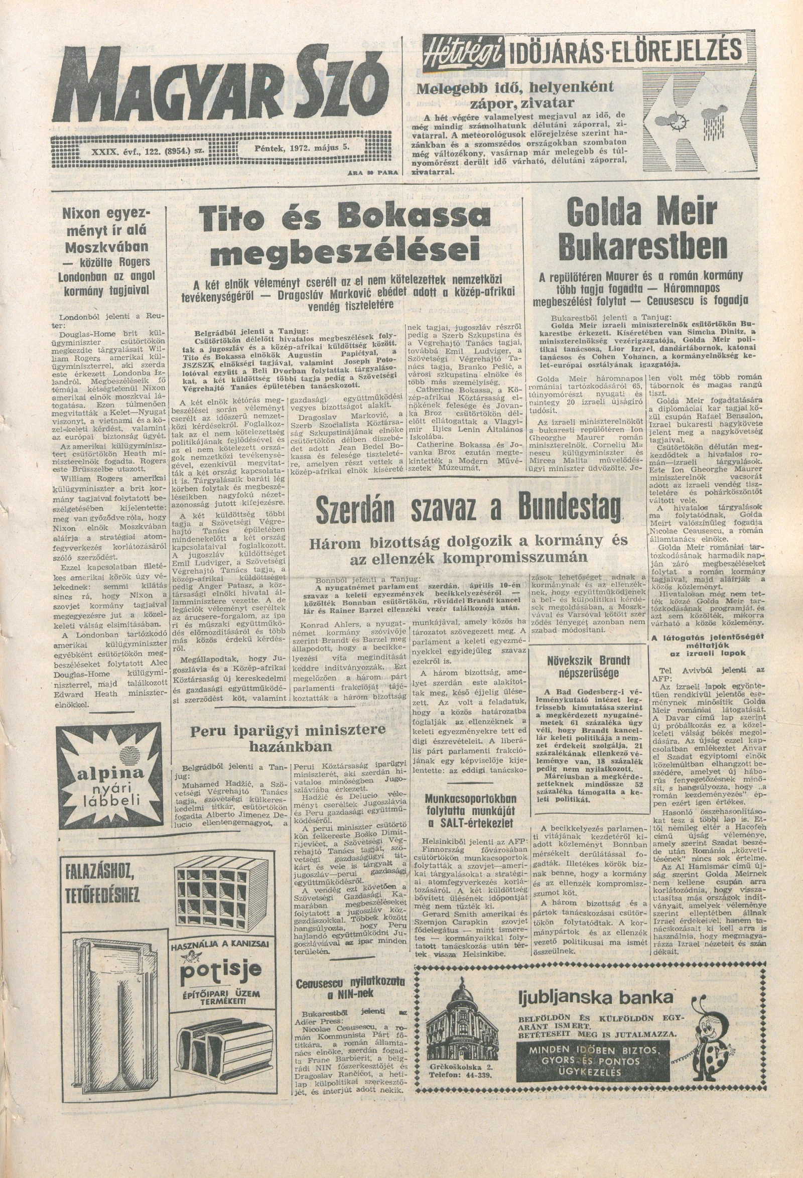 Magyar Szó, 29. évf. 1972. május 5. 122. sz. 1–20. oldal