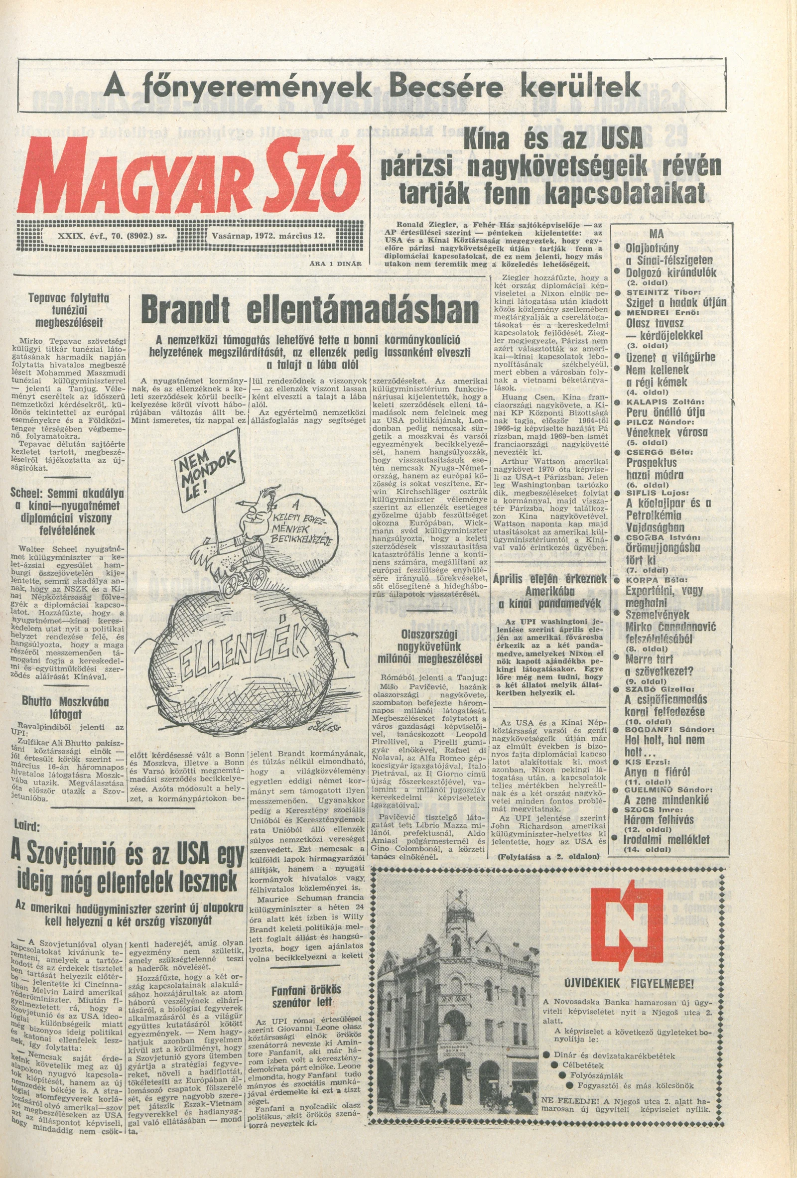Magyar Szó, 29. évf. 1972. március 12. 70. sz. 1–32. oldal