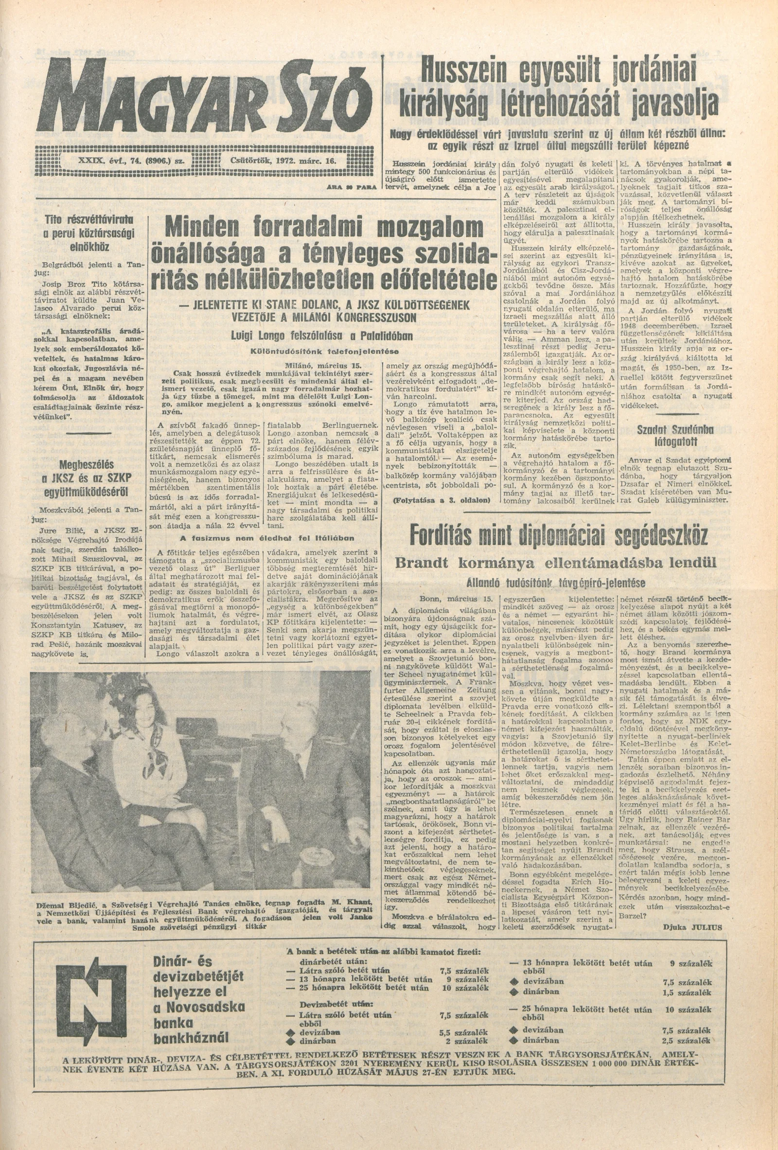 Magyar Szó, 29. évf. 1972. március 16. 74. sz. 1–12. oldal