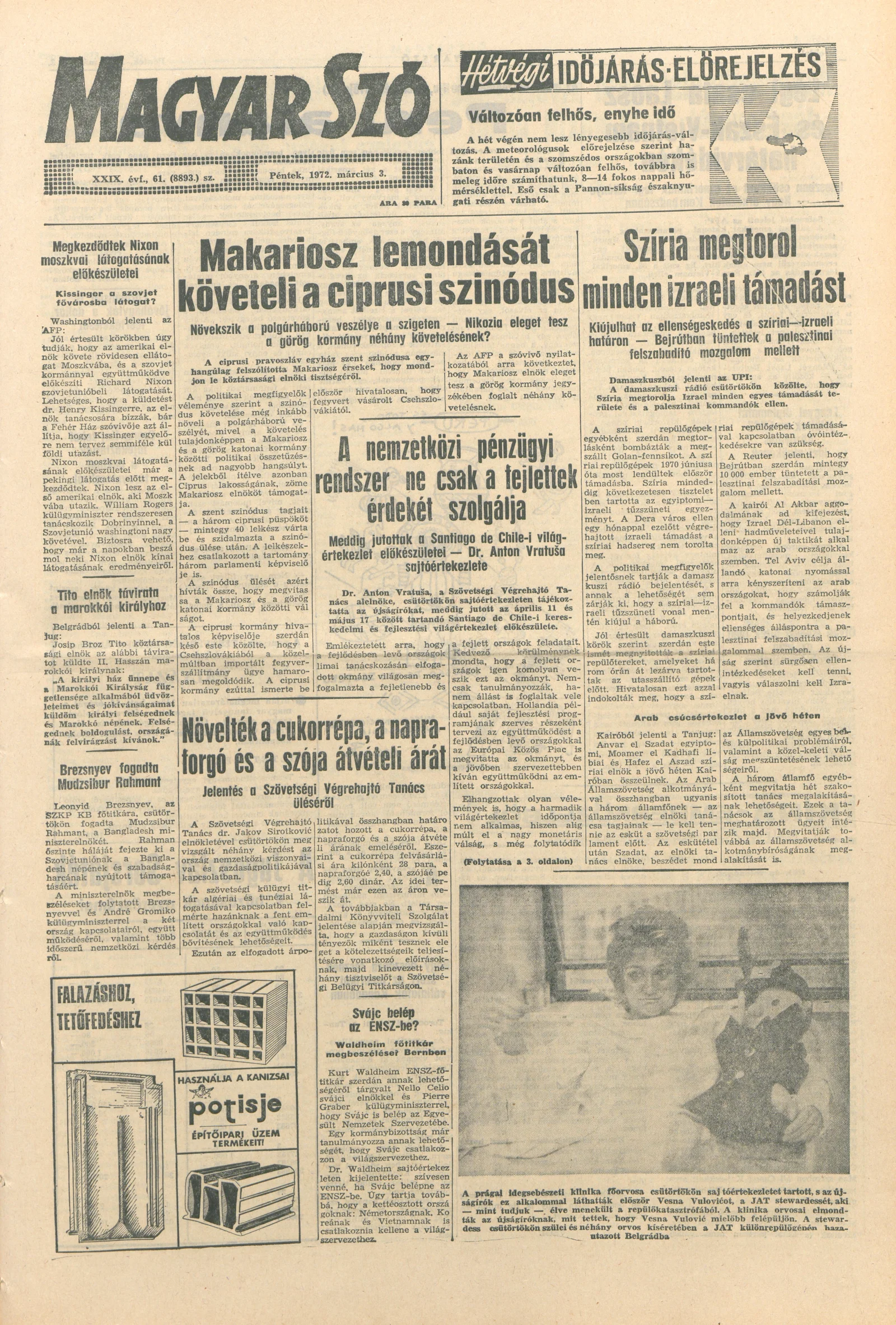 Magyar Szó, 29. évf. 1972. március 3. 61. sz. 1–12. oldal