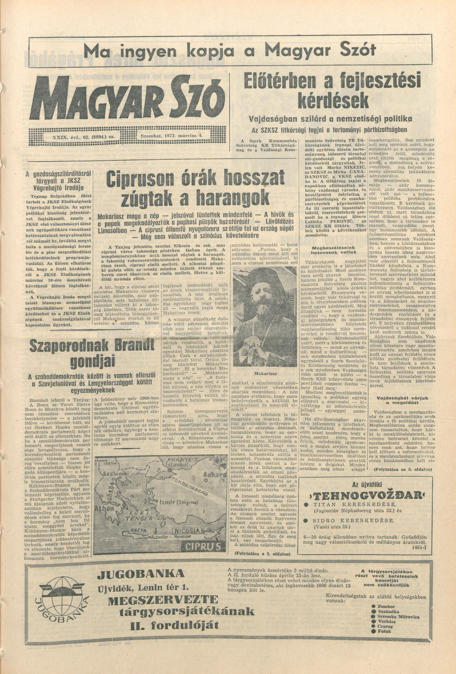 Magyar Szó, 29. évf. 1972. március 4. 62. sz. 1–20. oldal