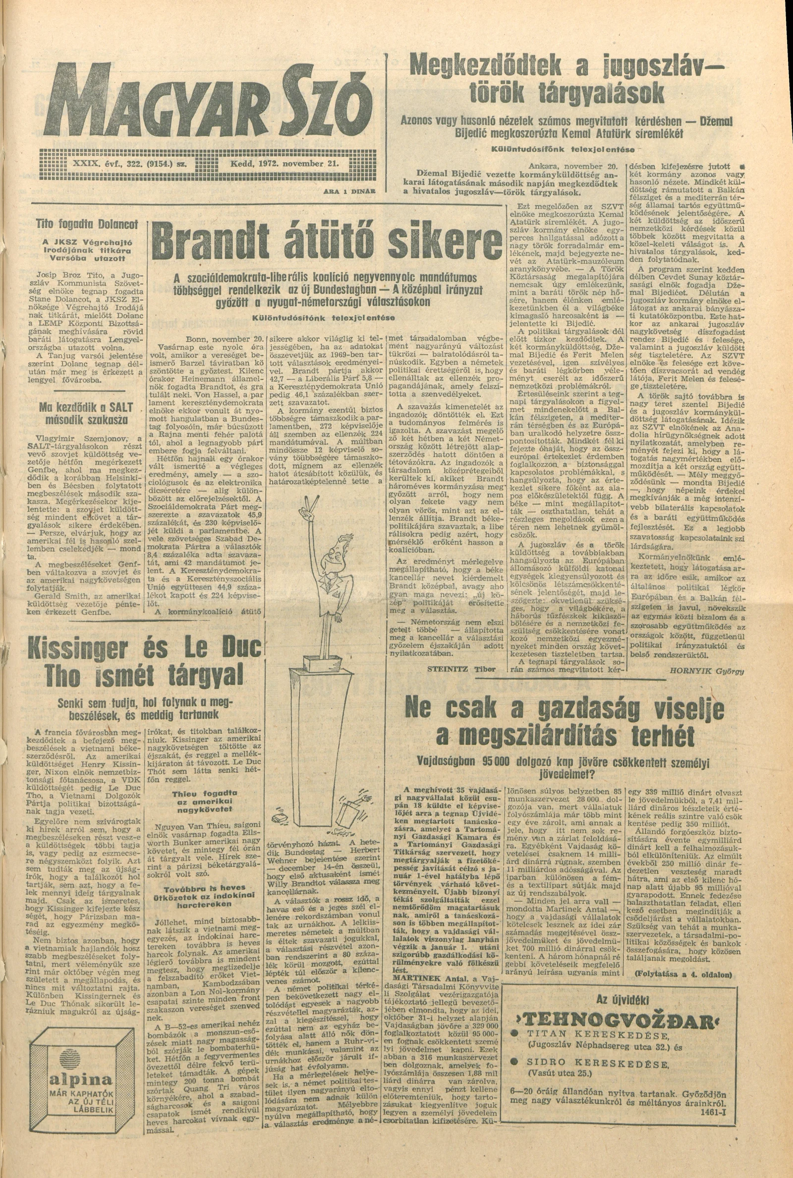 Magyar Szó, 29. évf. 1972. november 21. 322. sz. 1–20. oldal