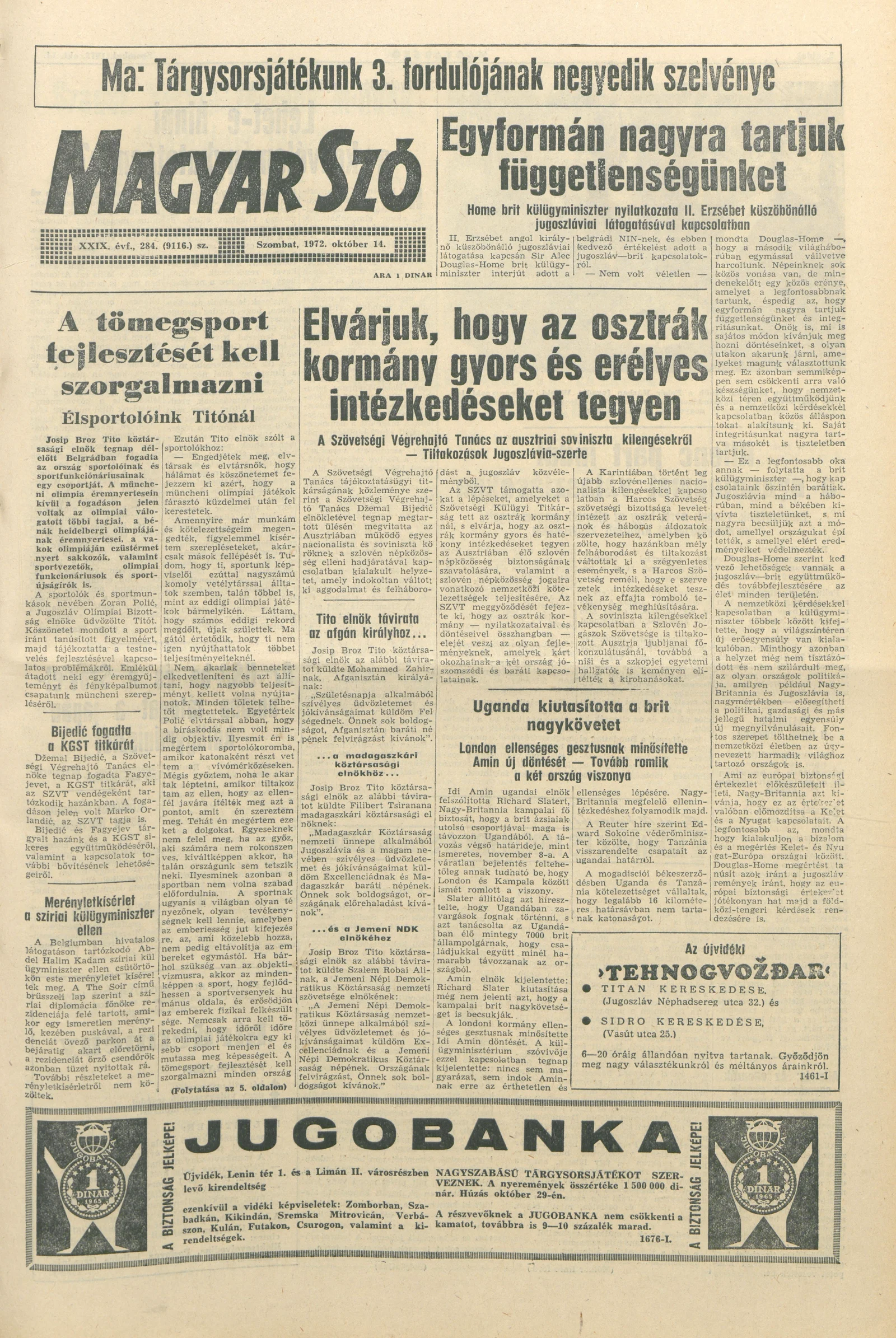 Magyar Szó, 29. évf. 1972. október 14. 284. sz. 1–20. oldal