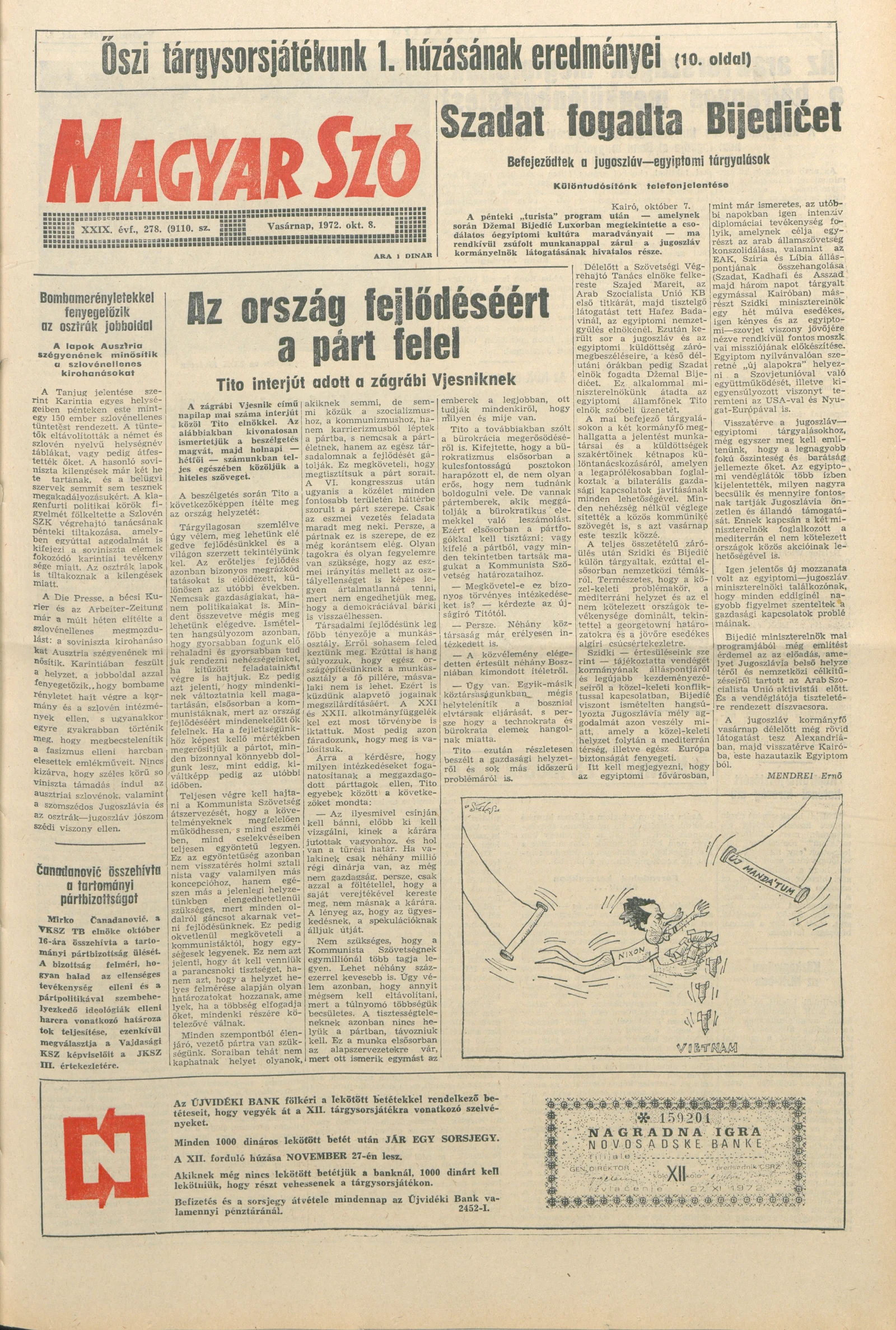Magyar Szó, 29. évf. 1972. október 8. 278. sz. 1–28. oldal