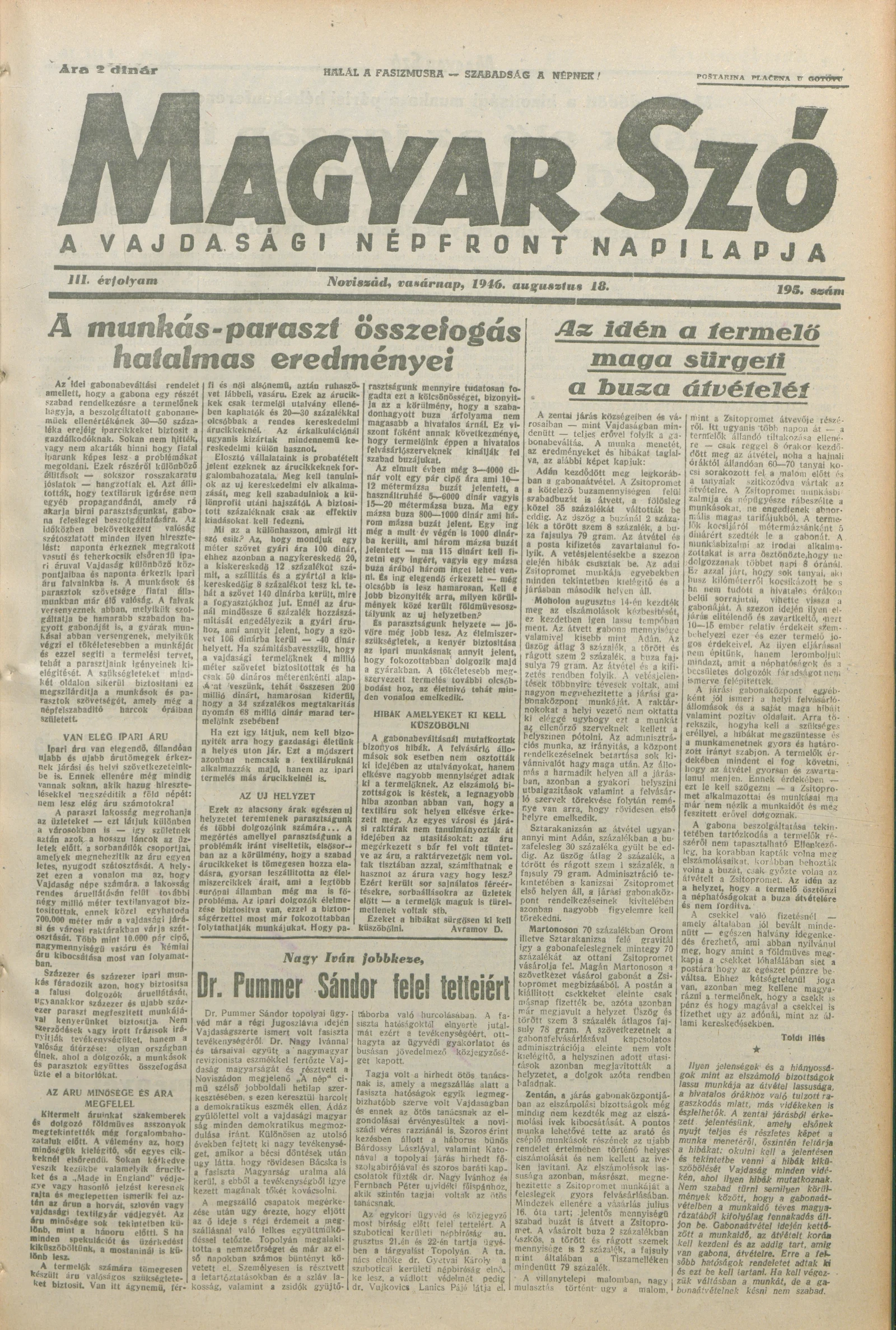 Magyar Szó, 3. évf. 1946. augusztus 18. 195. sz. 1–8. oldal