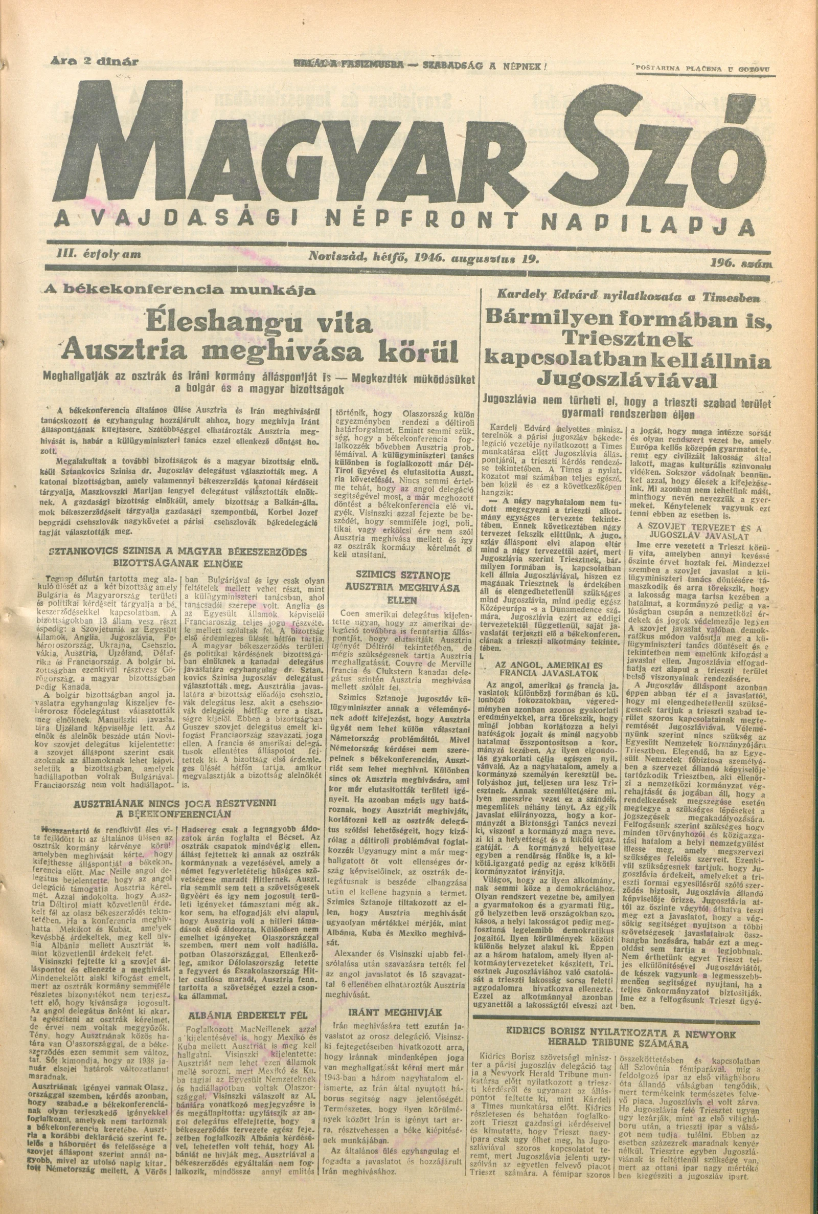 Magyar Szó, 3. évf. 1946. augusztus 19. 196. sz. 1–4. oldal
