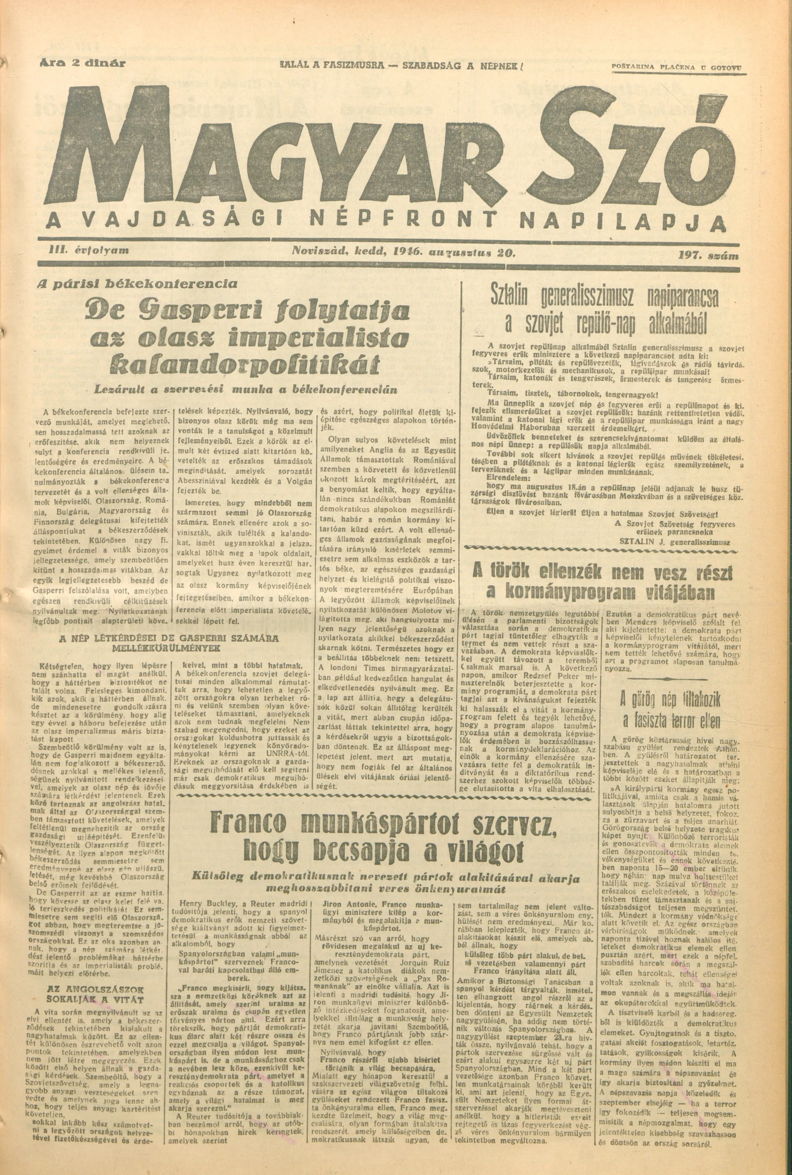 Magyar Szó, 3. évf. 1946. augusztus 20. 197. sz. 1–8. oldal