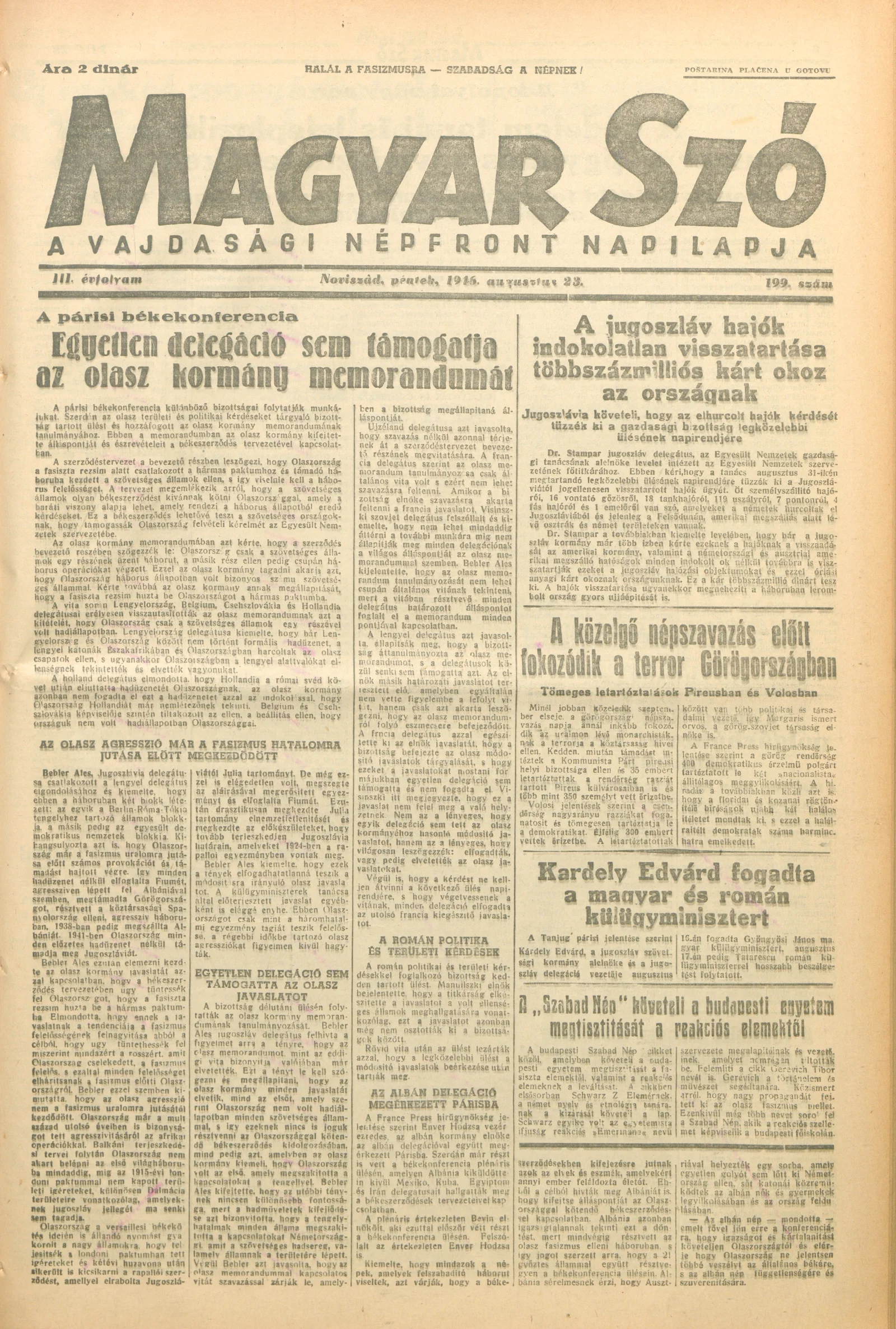 Magyar Szó, 3. évf. 1946. augusztus 23. 199. sz. 1–6. oldal