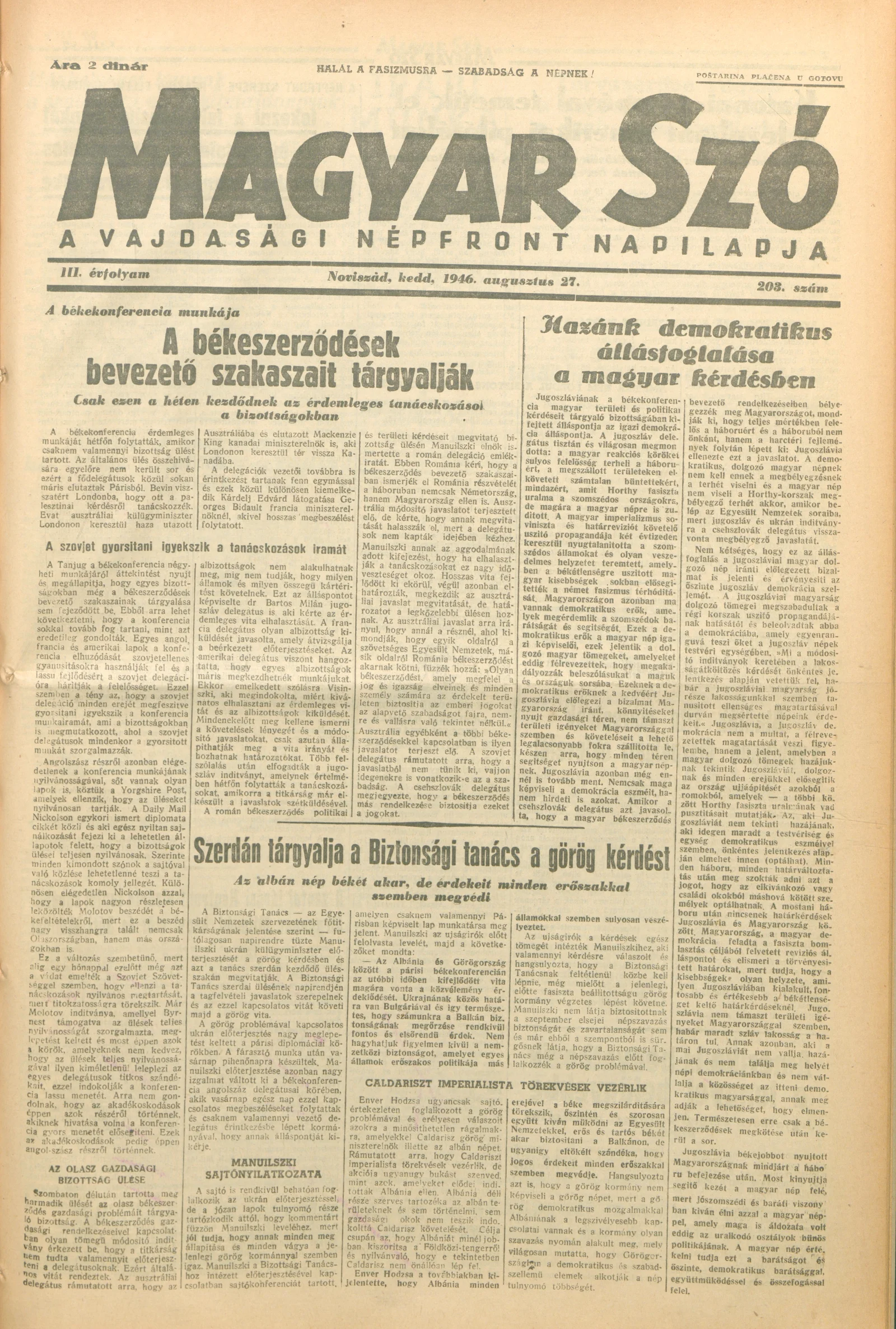 Magyar Szó, 3. évf. 1946. augusztus 27. 203. sz. 1–6. oldal