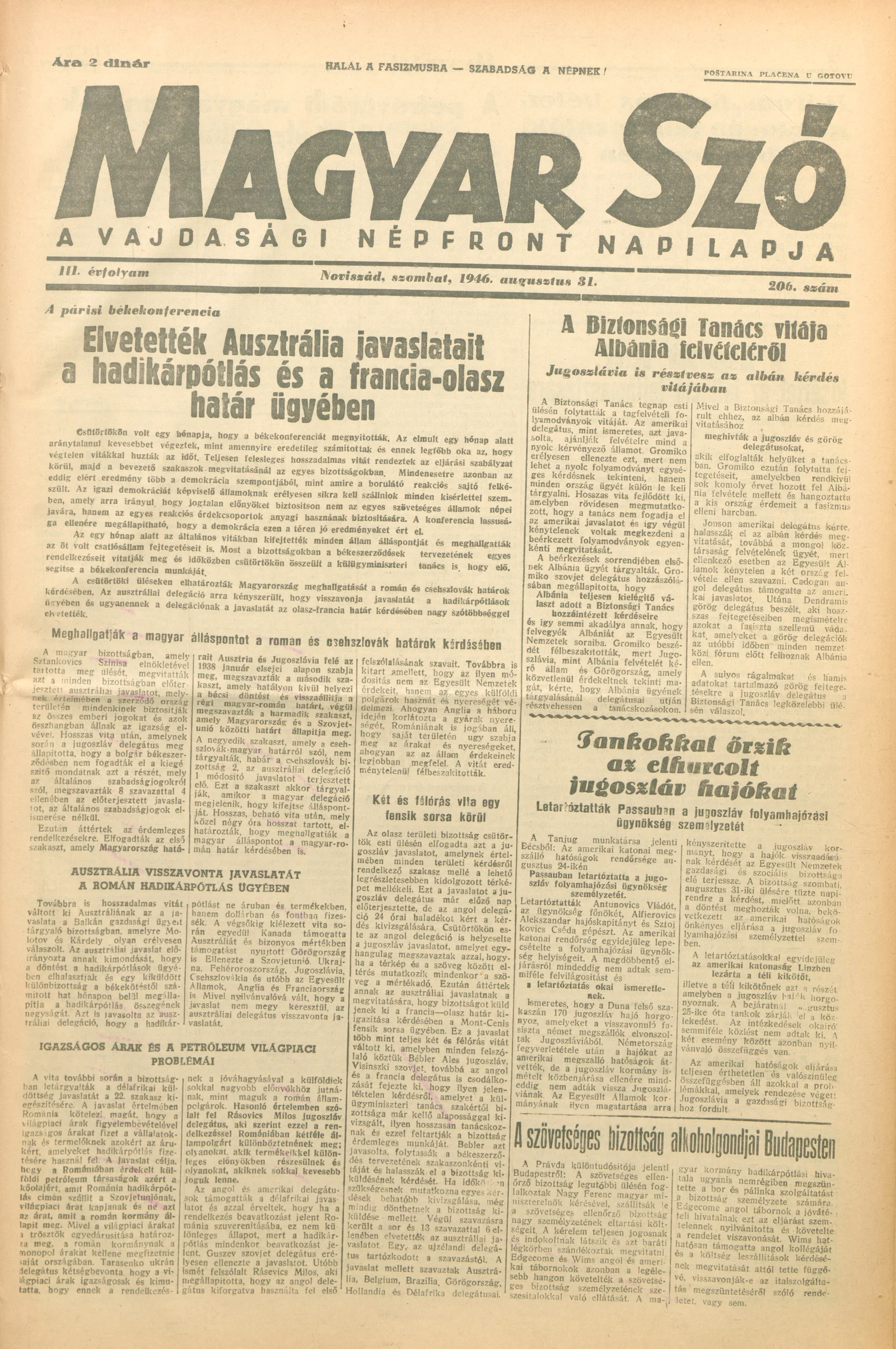Magyar Szó, 3. évf. 1946. augusztus 31. 206. sz. 1–6. oldal