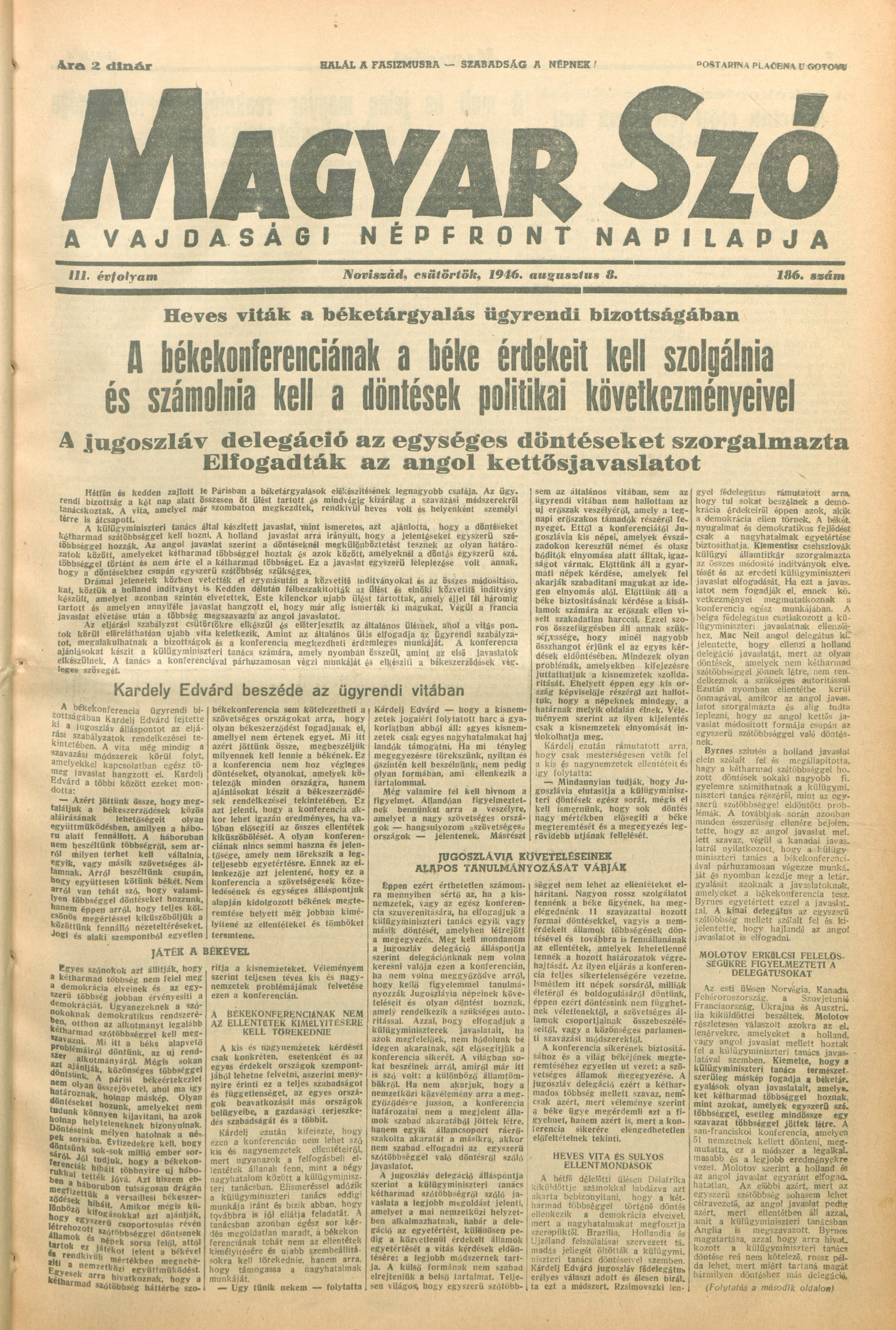 Magyar Szó, 3. évf. 1946. augusztus 8. 186. sz. 1–8. oldal