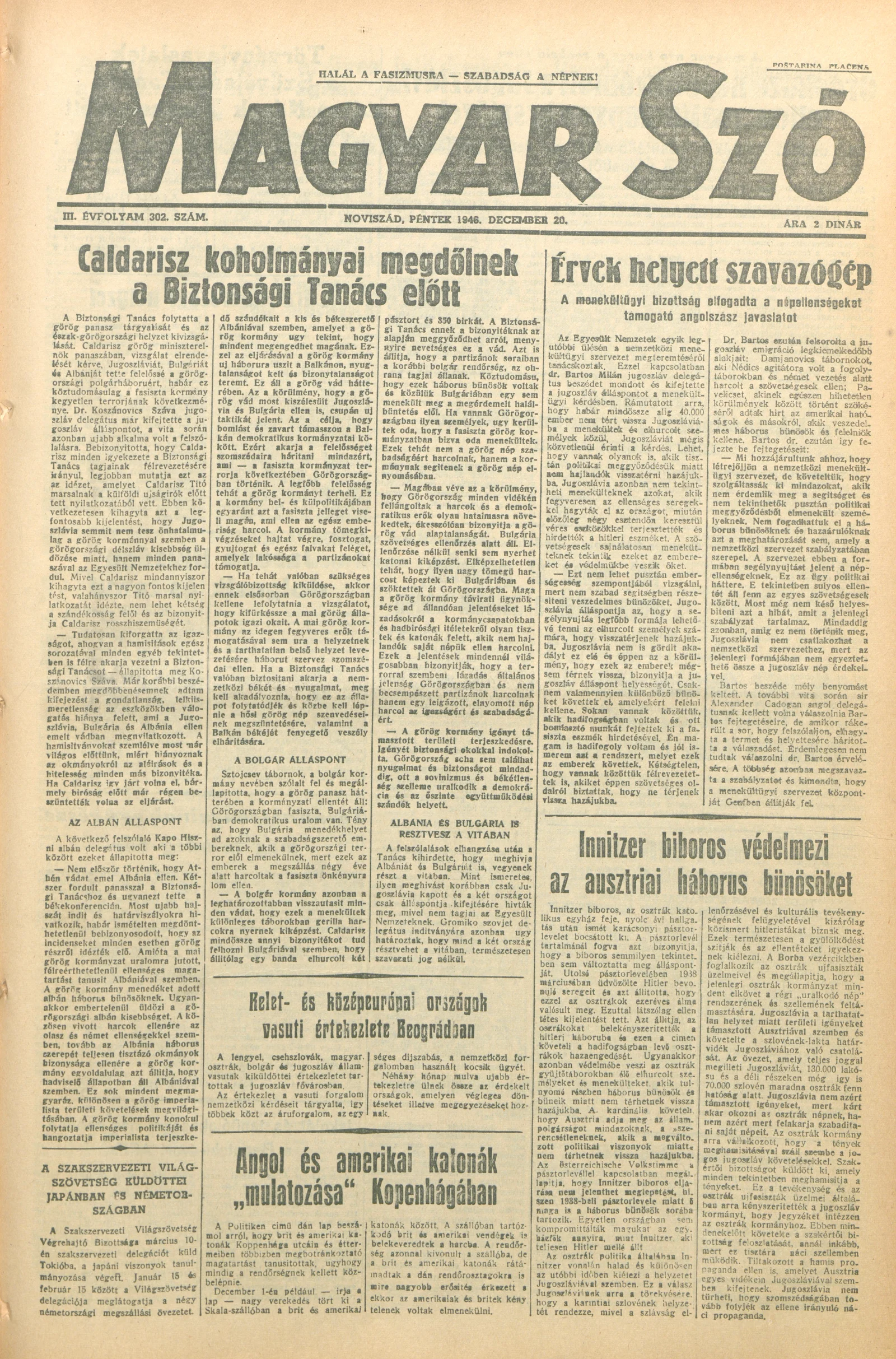 Magyar Szó, 3. évf. 1946. december 20. 302. sz. 1–6. oldal