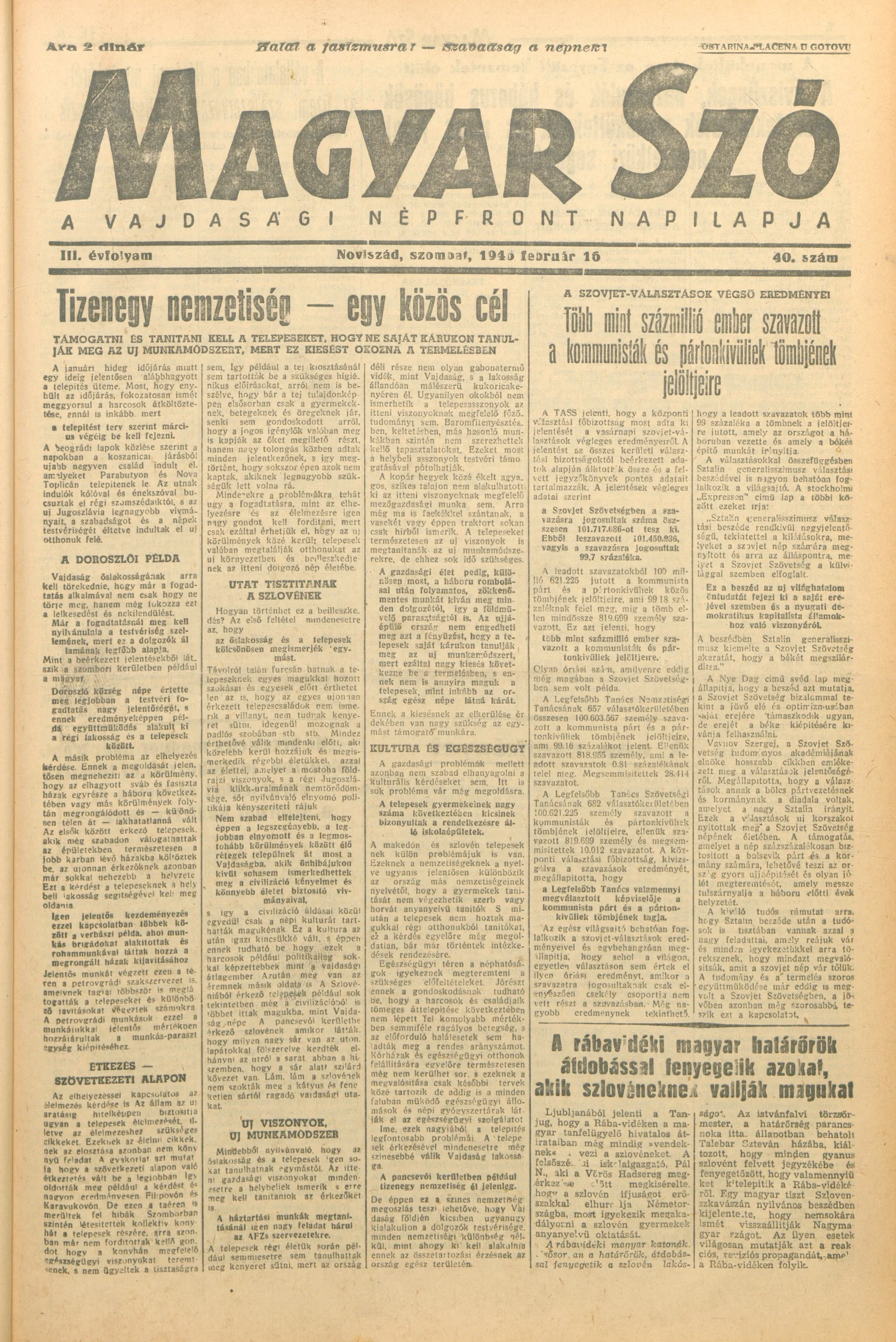 Magyar Szó, 3. évf. 1946. február 16. 40. sz. 1–6. oldal