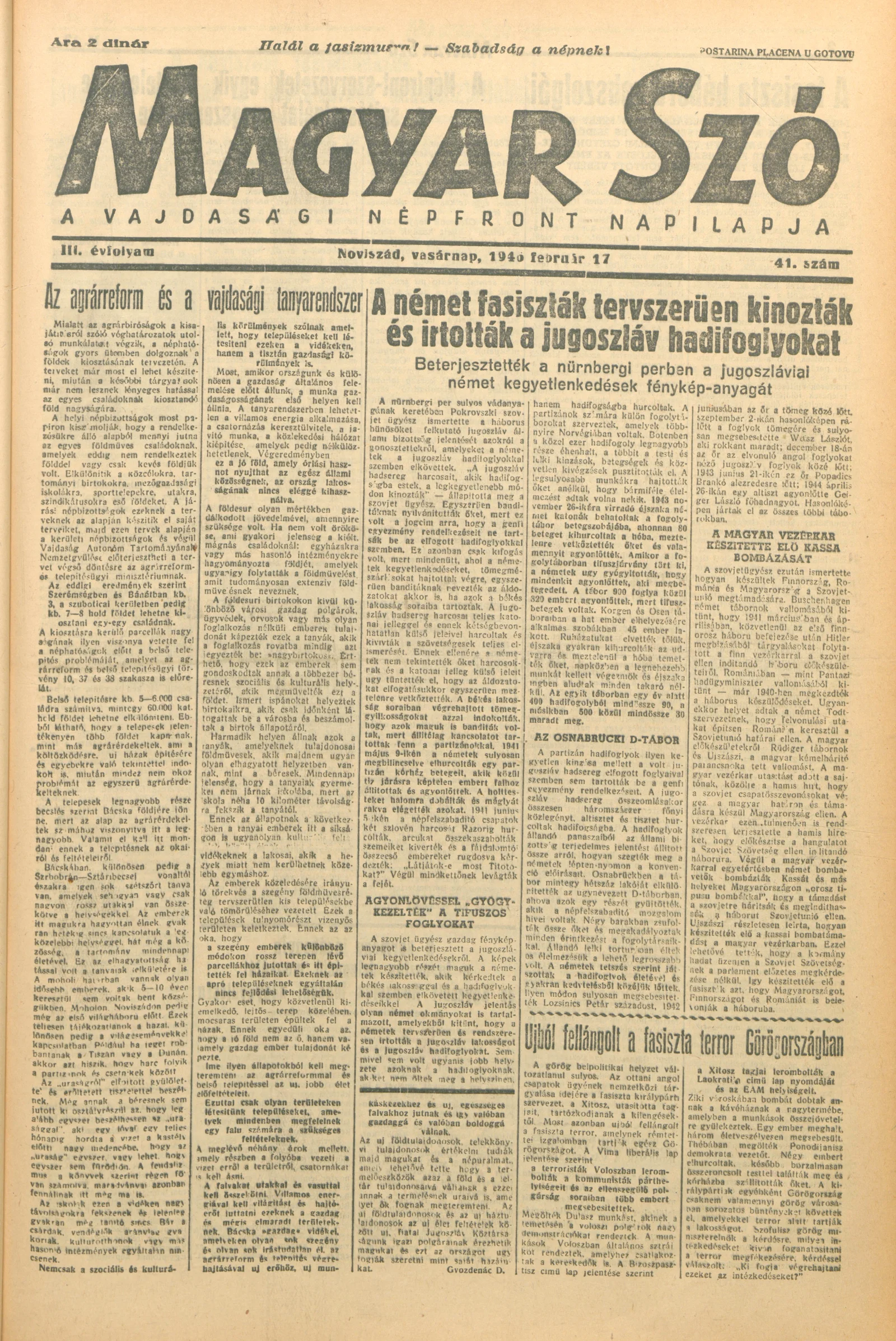 Magyar Szó, 3. évf. 1946. február 17. 41. sz. 1–8. oldal