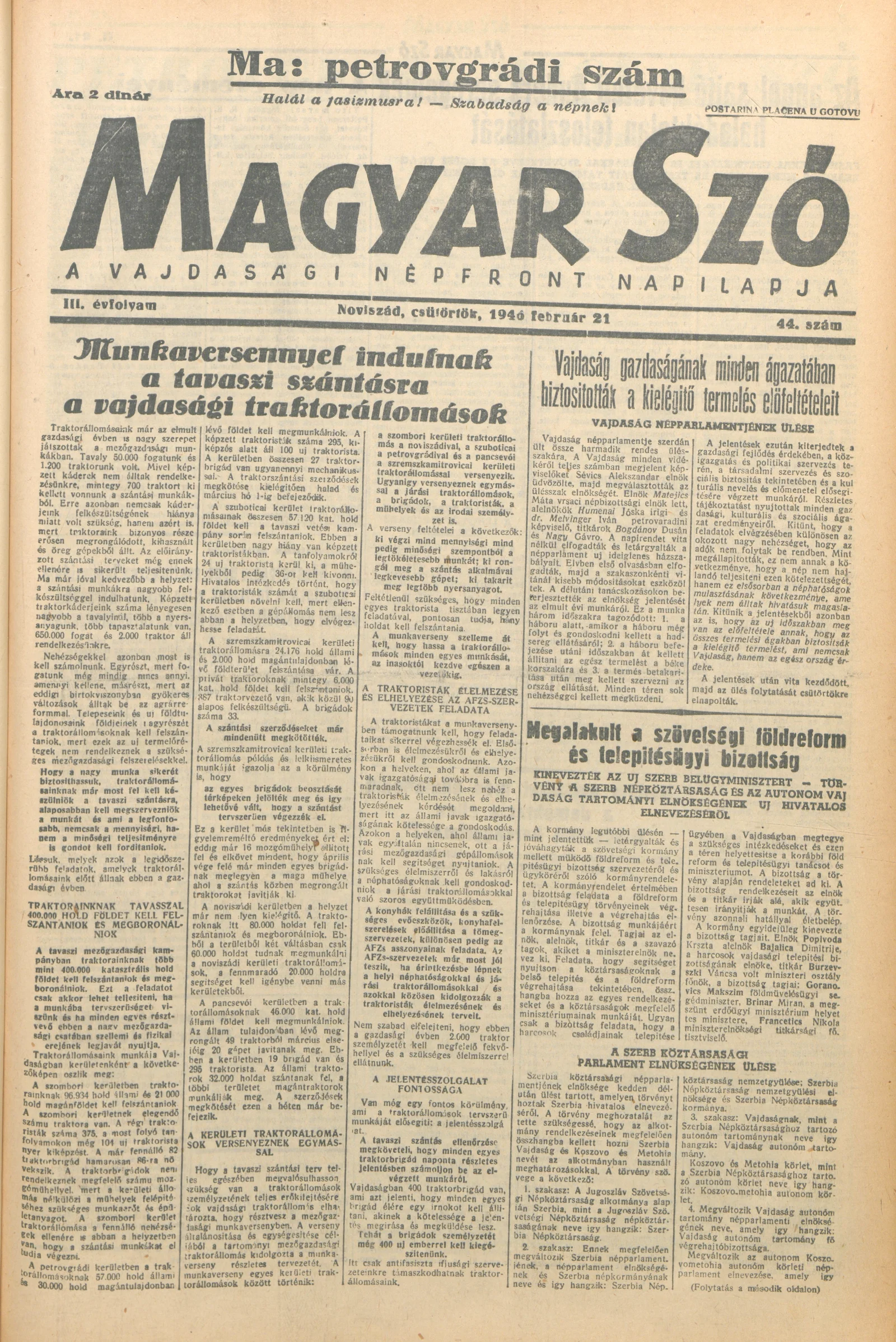 Magyar Szó, 3. évf. 1946. február 21. 44. sz. 1–8. oldal