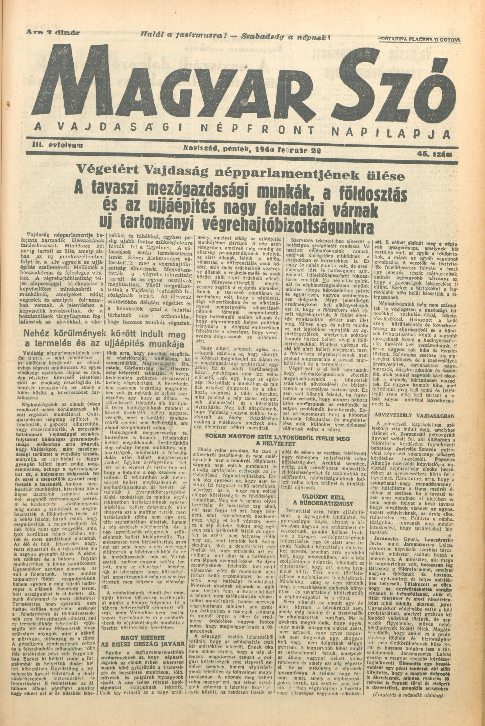 Magyar Szó, 3. évf. 1946. február 22. 45. sz. 1–6. oldal