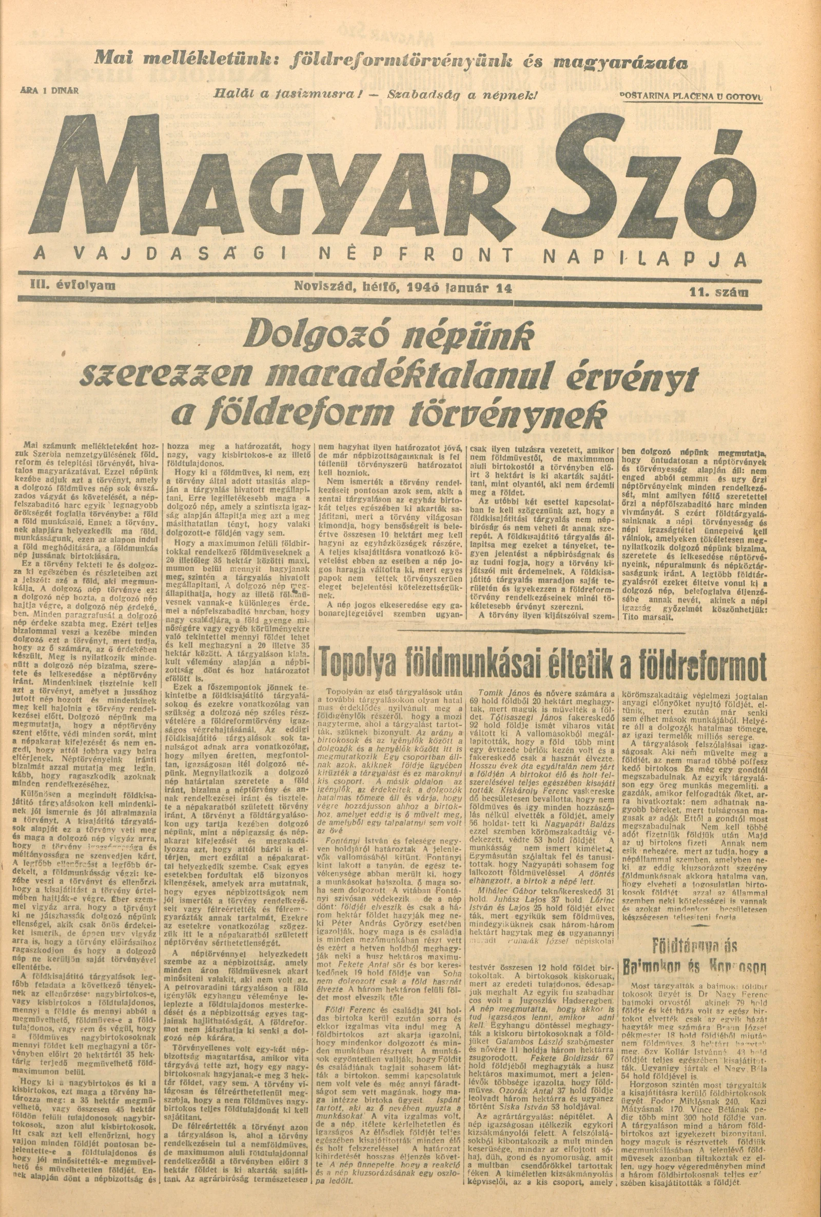 Magyar Szó, 3. évf. 1946. január 14. 11. sz. 1–8. oldal