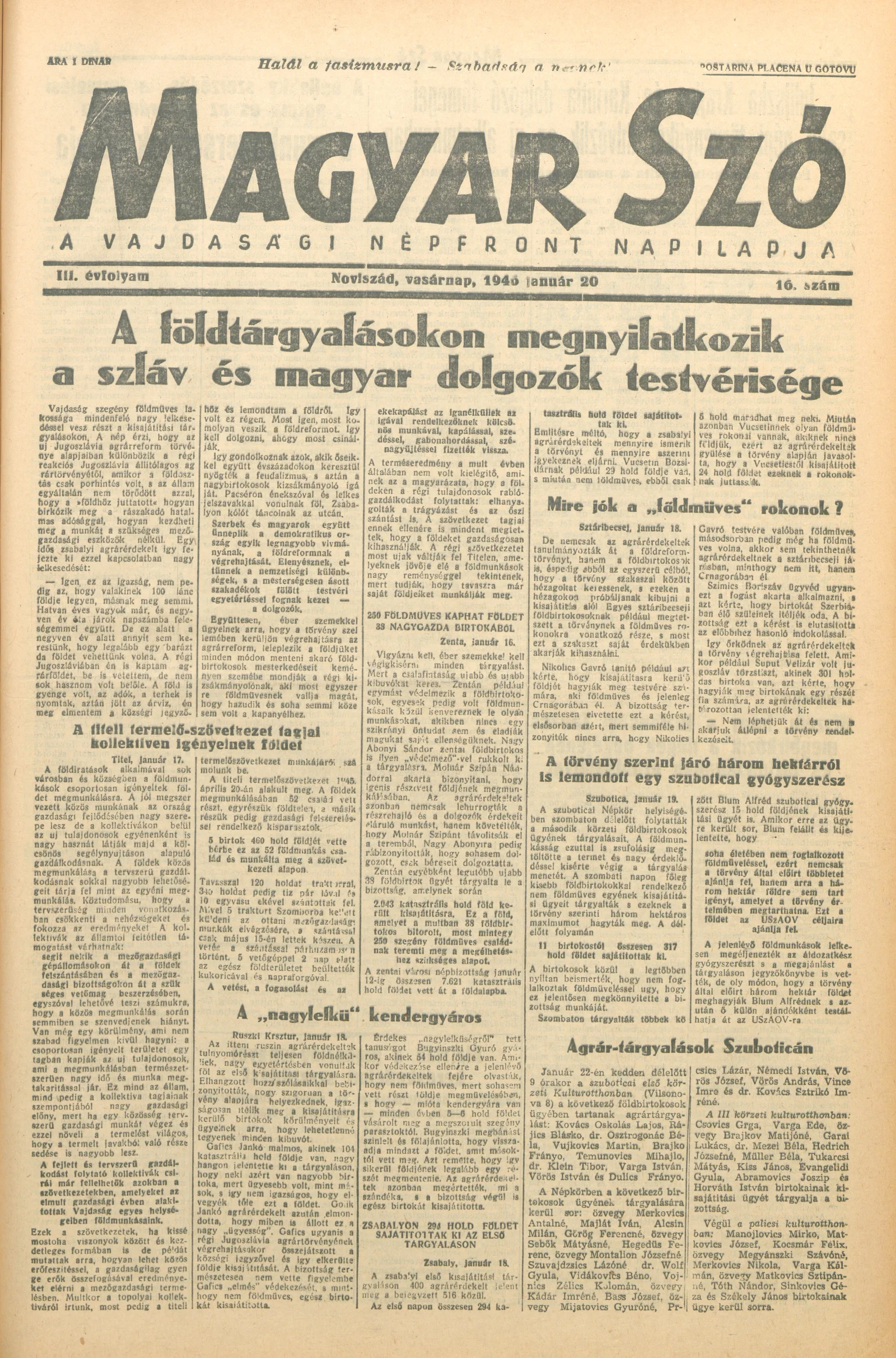 Magyar Szó, 3. évf. 1946. január 20. 16. sz. 1–6. oldal