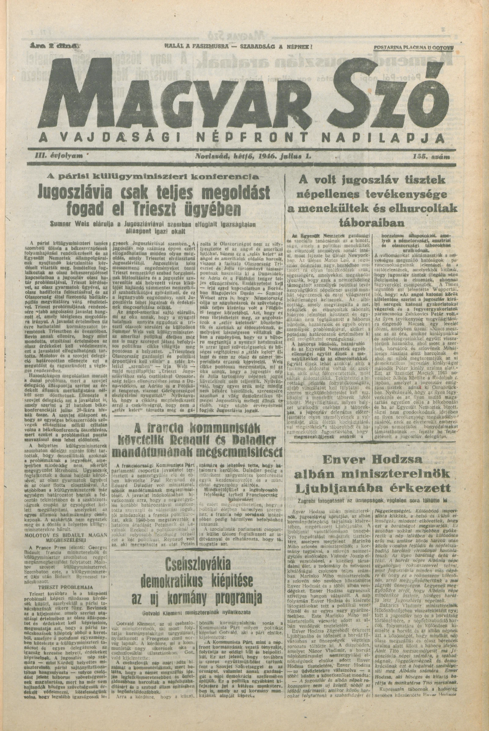 Magyar Szó, 3. évf. 1946. július 1. 155. sz. 1–6. oldal
