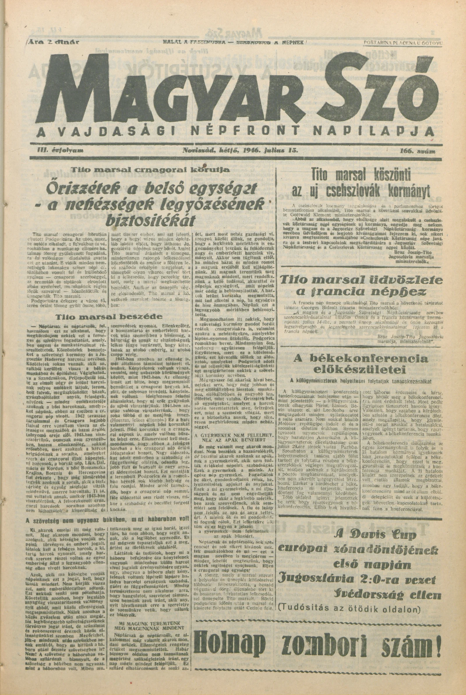 Magyar Szó, 3. évf. 1946. július 15. 166. sz. 1–6. oldal