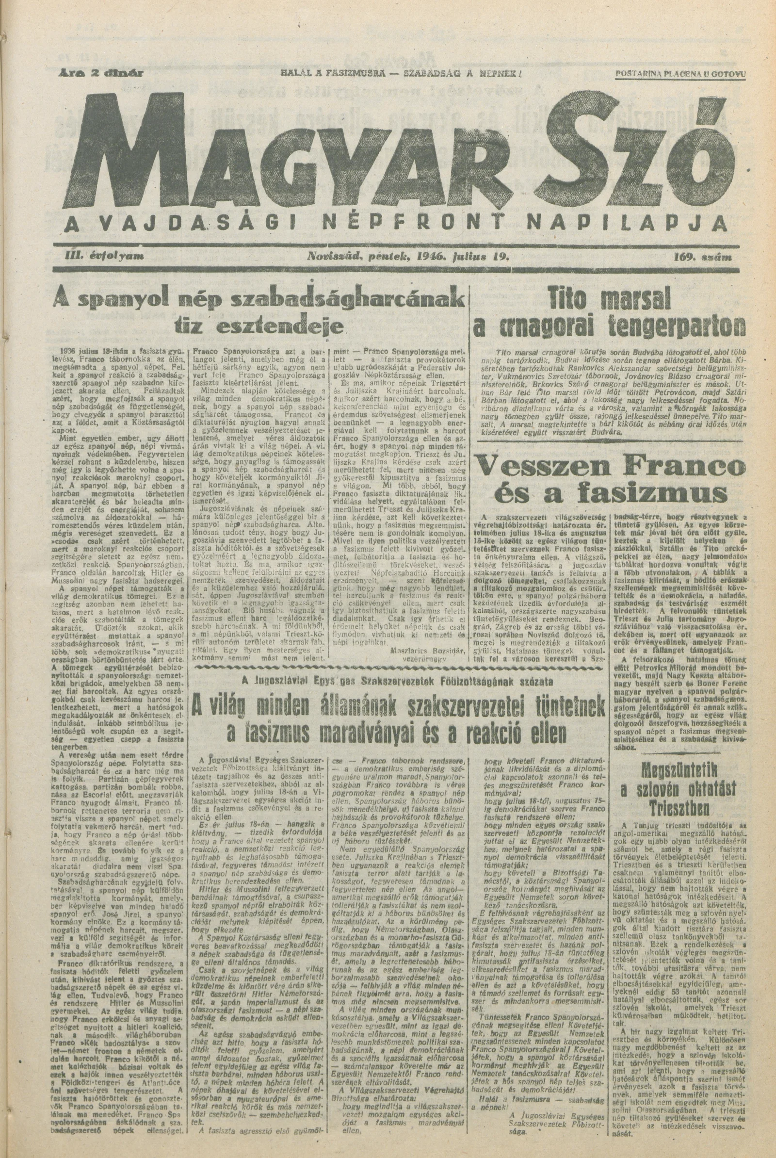 Magyar Szó, 3. évf. 1946. július 19. 169. sz. 1–8. oldal