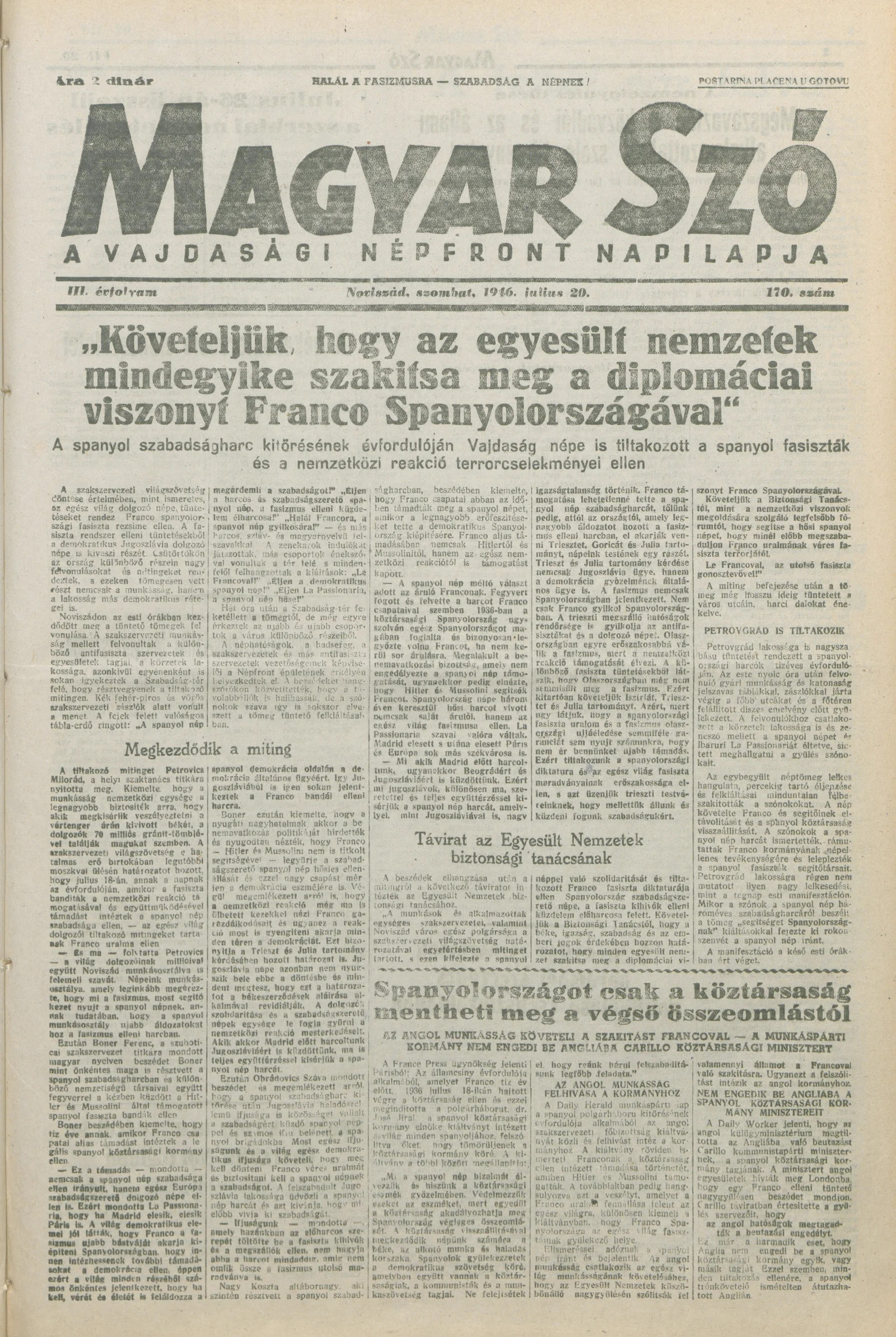 Magyar Szó, 3. évf. 1946. július 20. 170. sz. 1–8. oldal