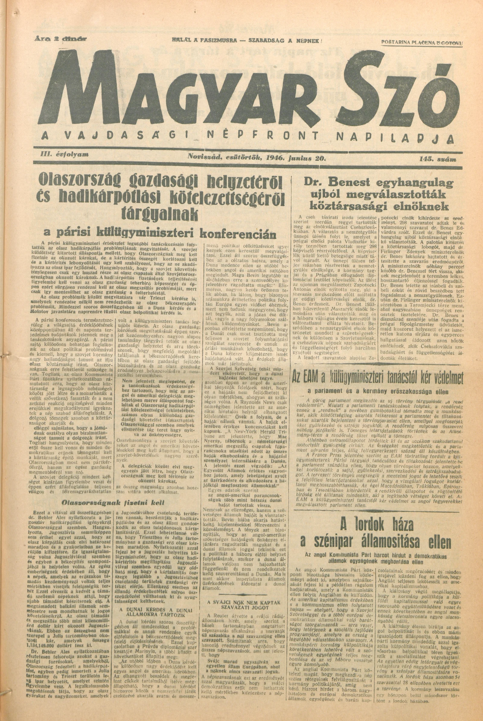 Magyar Szó, 3. évf. 1946. június 20. 145. sz. 1–8. oldal