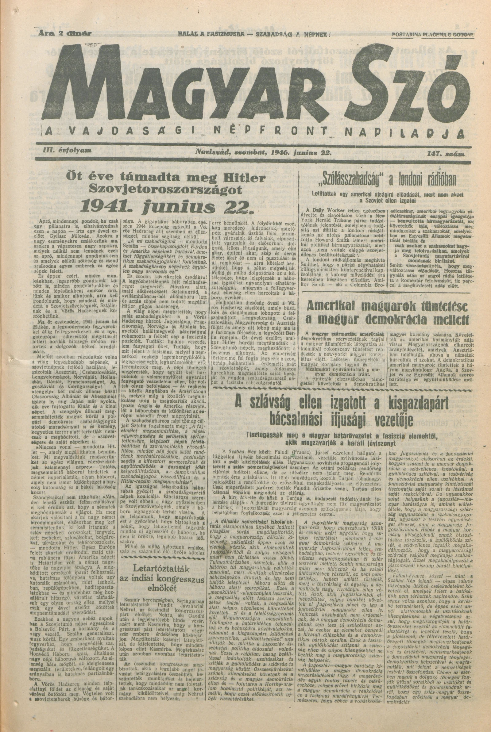 Magyar Szó, 3. évf. 1946. június 22. 147. sz. 1–8. oldal