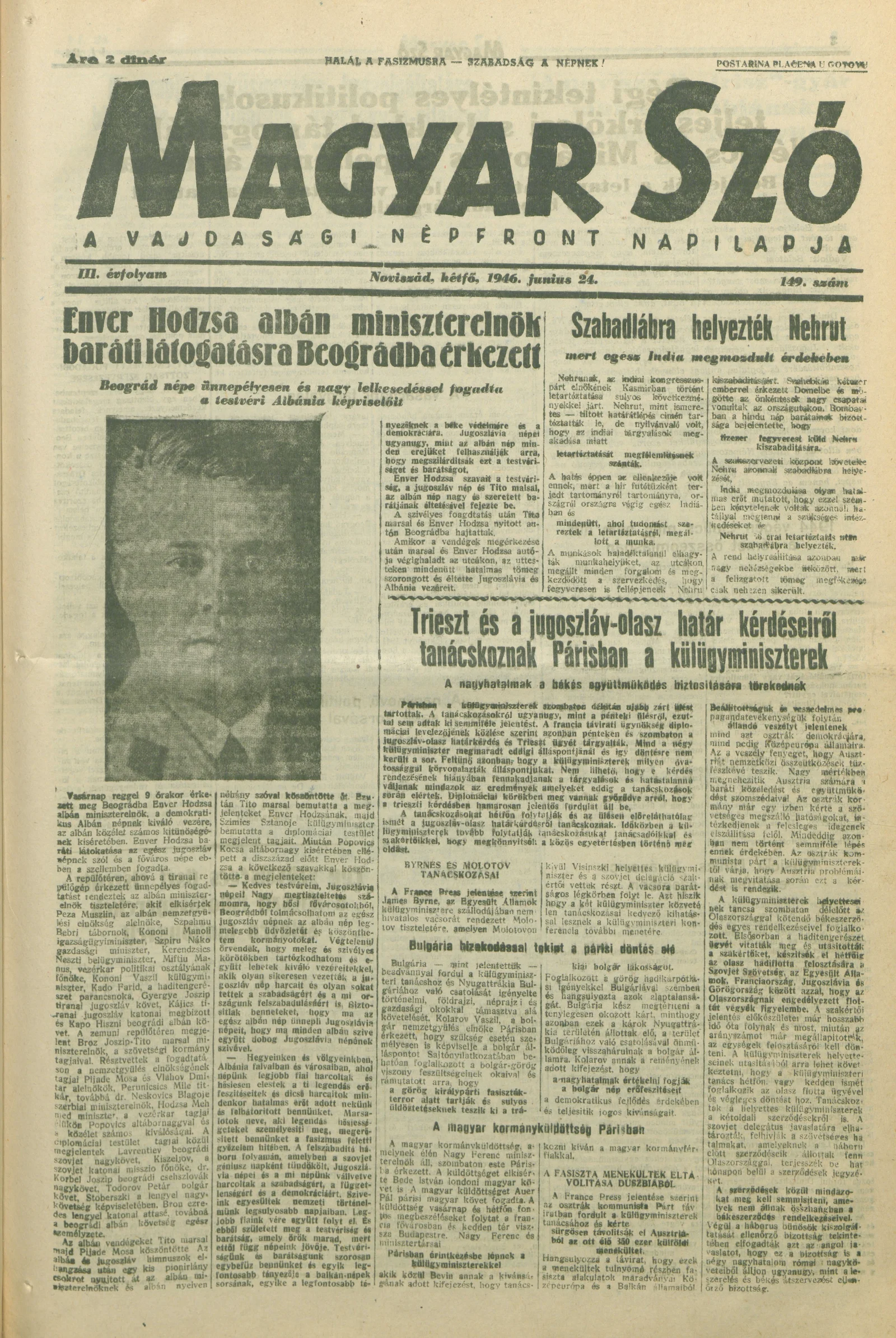 Magyar Szó, 3. évf. 1946. június 24. 149. sz. 1–6. oldal